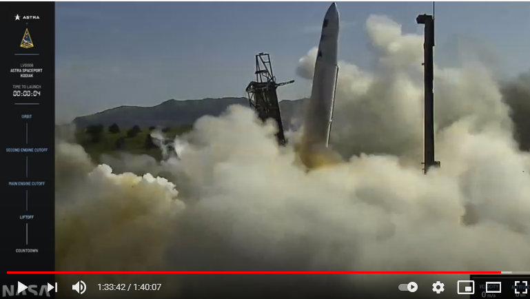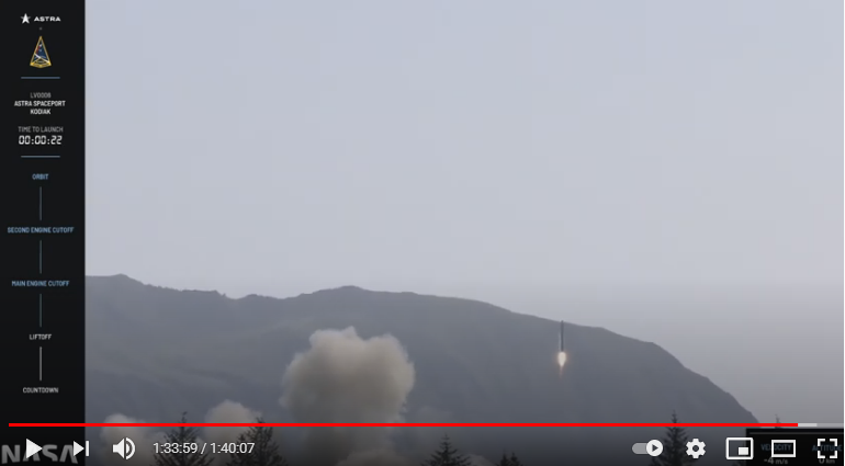 Astra CEO Chris Kemp says that an engine shutdown less than 1 second into flight. Rocket managed to return to its trajectory for a bit until the range terminated the flight. The rocket returned to Earth without causing any damage to property.