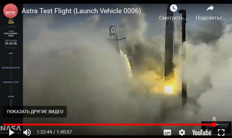 Цитата: undefinedГенеральный директор Astra Крис Кемп говорит, что двигатель отключился менее чем через 1 секунду полета. Ракета смогла ненадолго вернуться на свою траекторию, пока полигон не прекратил полет. Ракета вернулась на Землю, не причинив никакого ущерба имуществу.