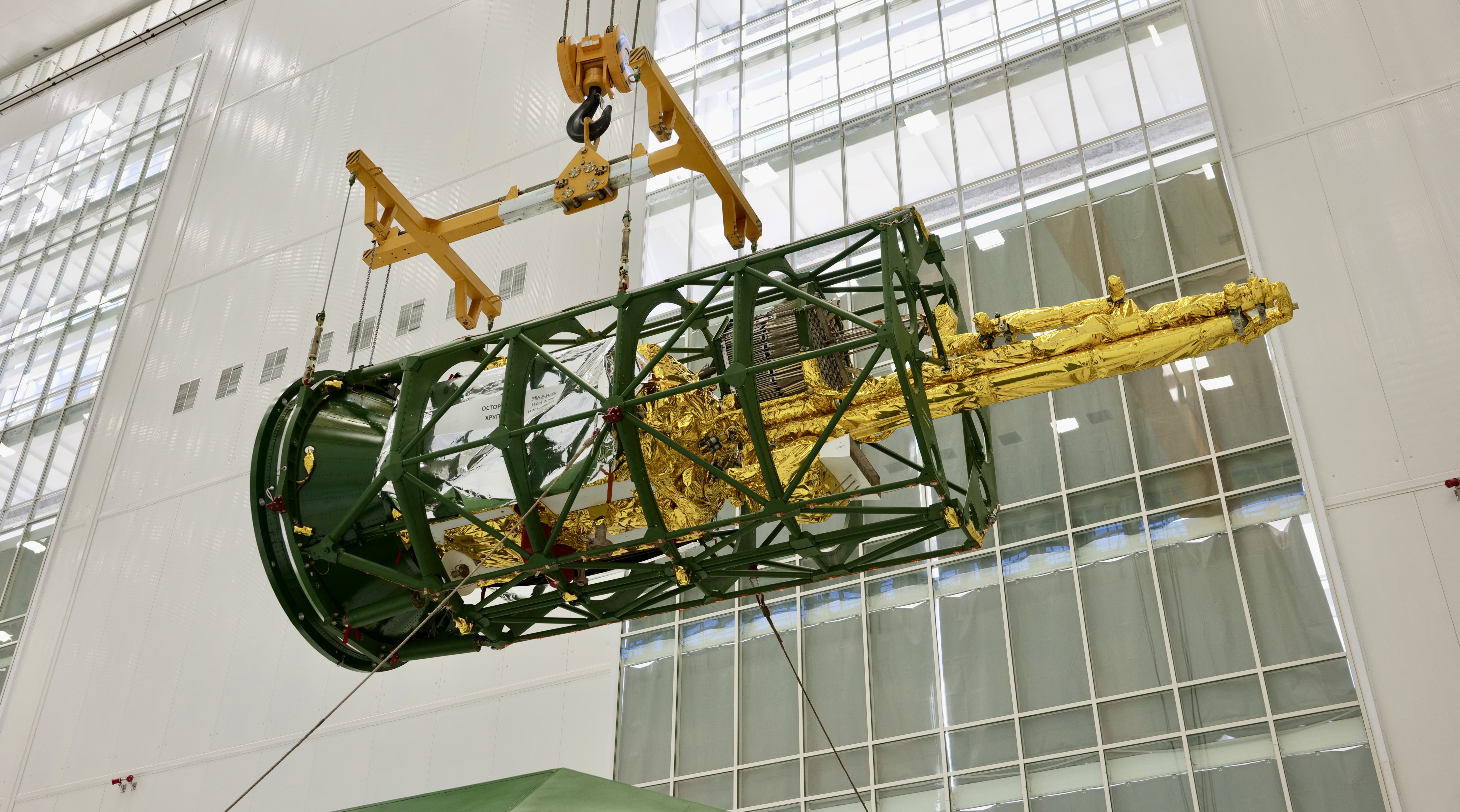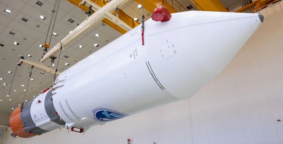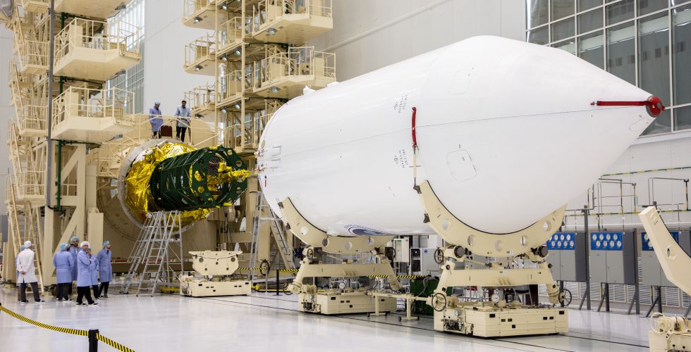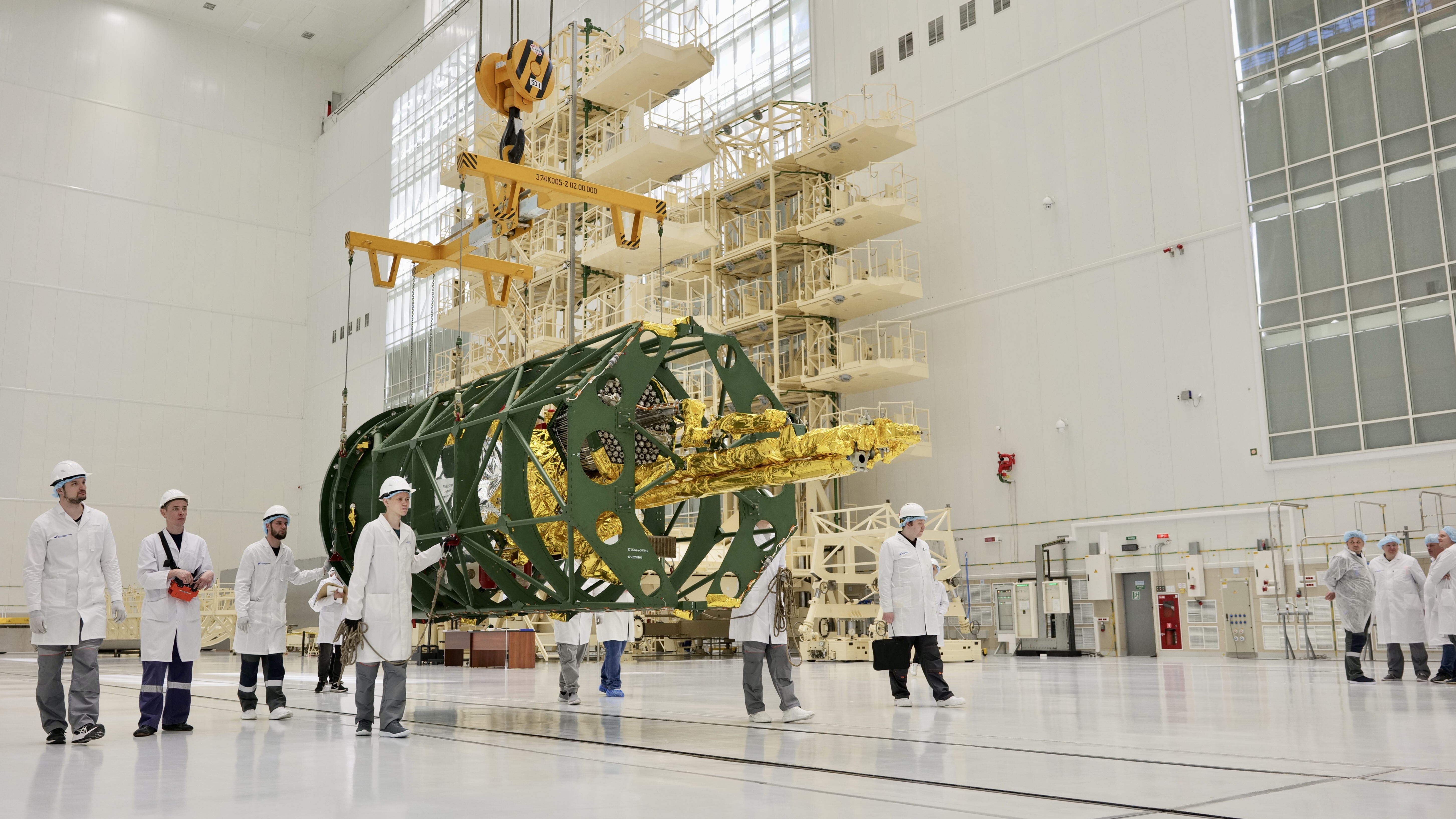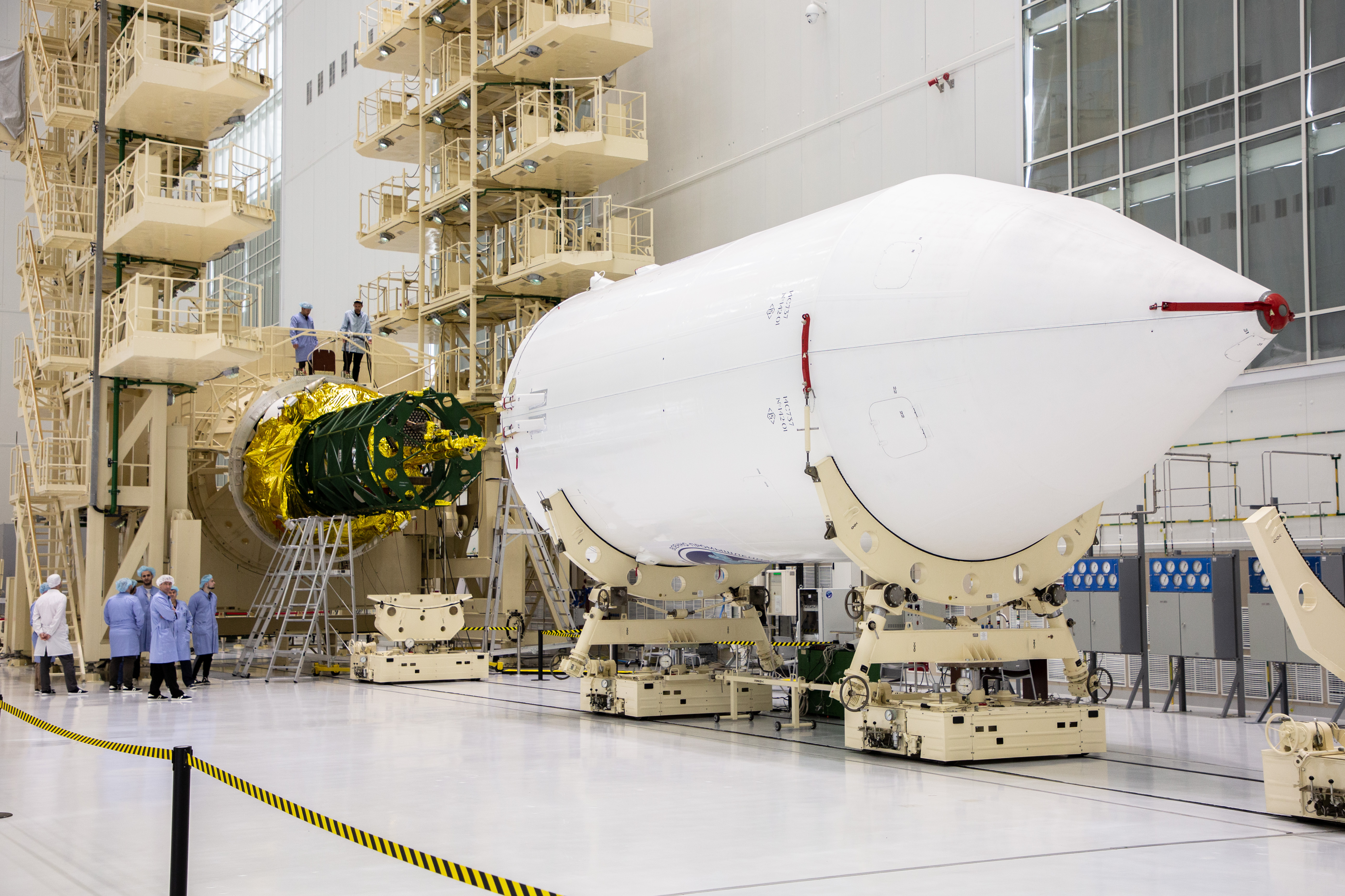 Сегодня на космодроме Восточный специалисты предприятий Госкорпорации «Роскосмос» выполнили общую сборку ракеты космического назначения «Союз-2.1а» с радиолокационным спутником дистанционного зондирования Земли «Кондор-ФКА» №1.
