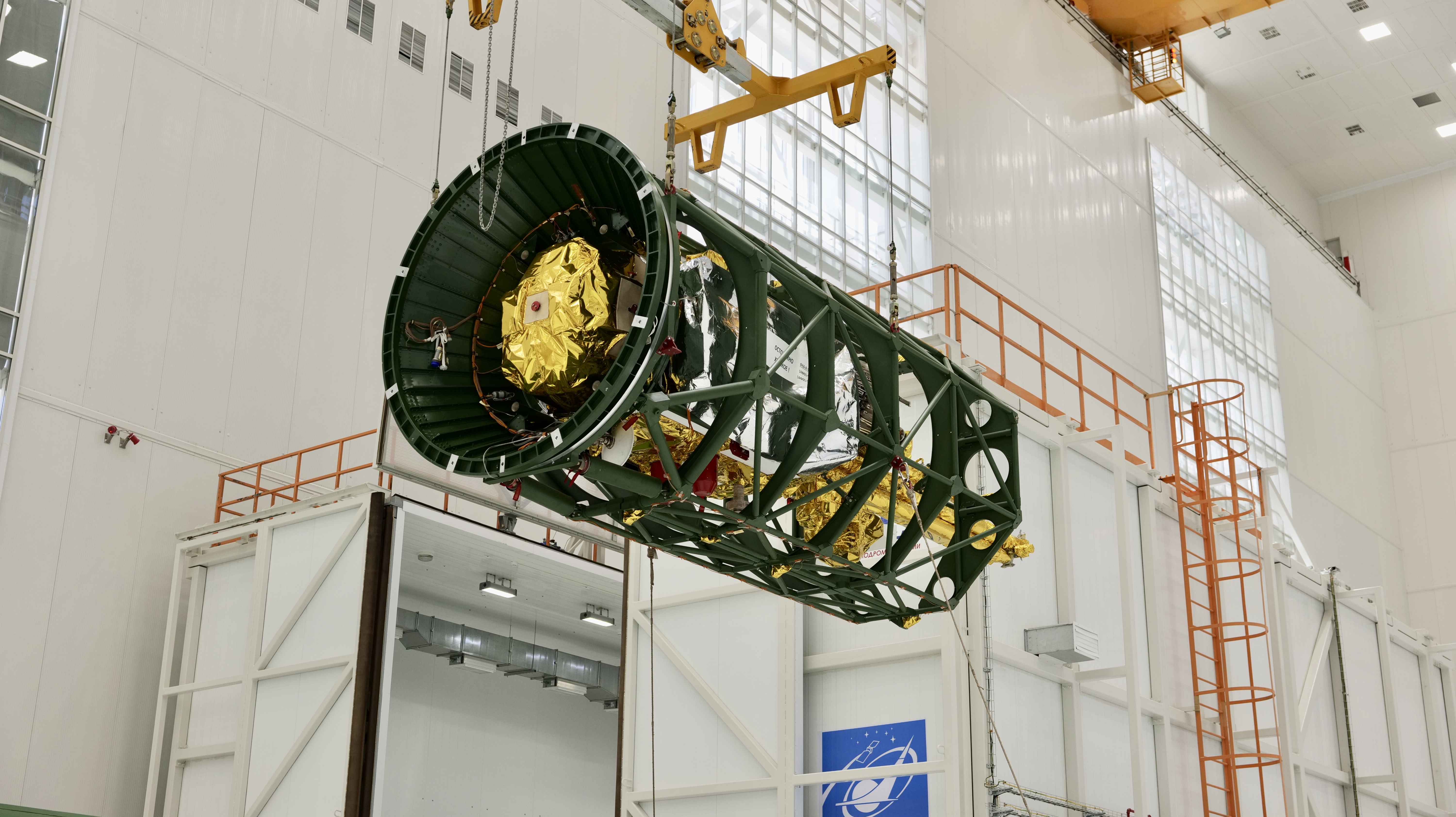 Что космический аппарат запускают закреплённым внутри несущей рамы.