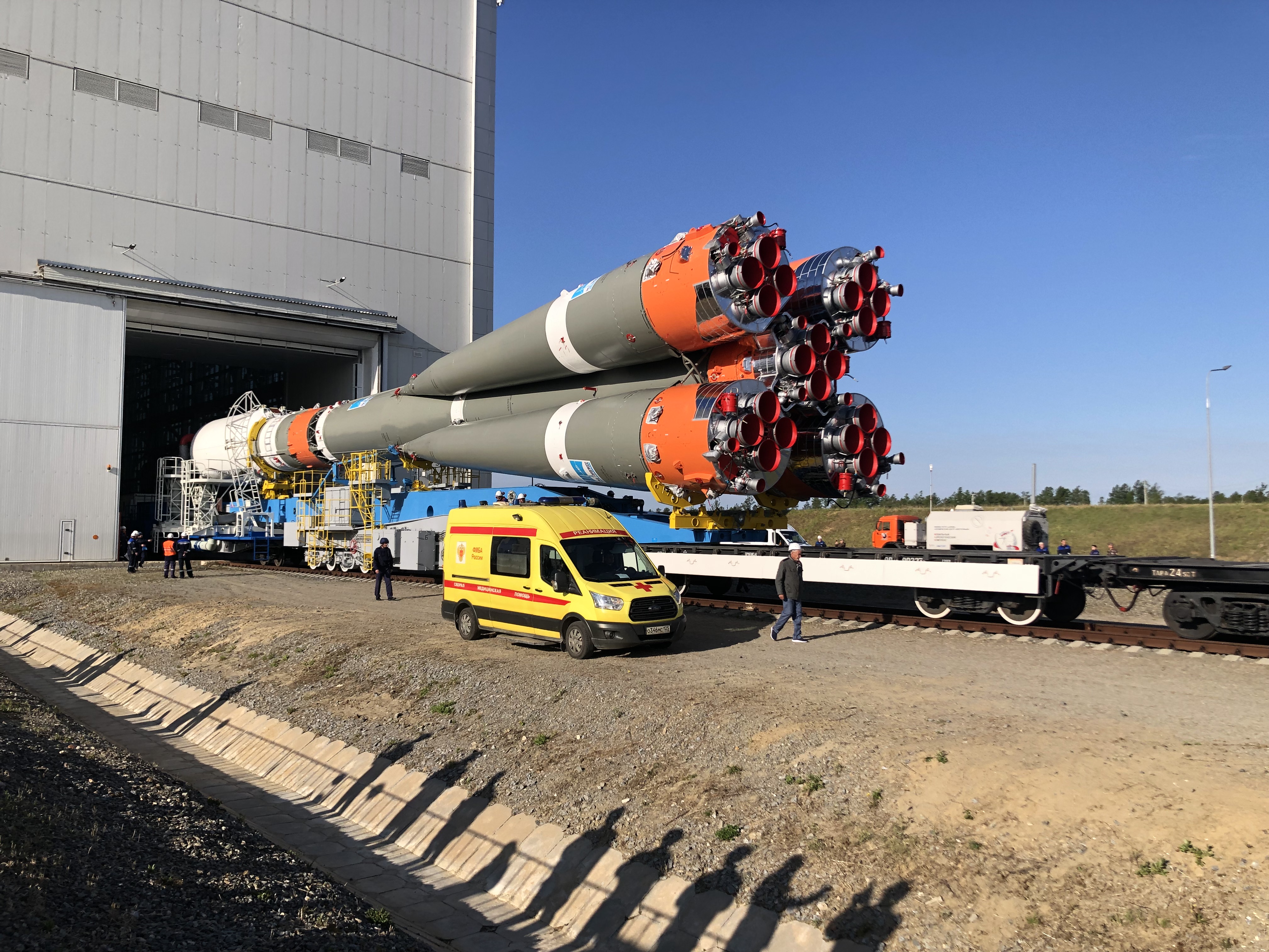 Сегодня ракета космического назначения «Союз-2.1а» с радиолокационным спутником дистанционного зондирования Земли «Кондор-ФКА» №1 была транспортирована на стартовый комплекс площадки 1С космодрома Восточный.