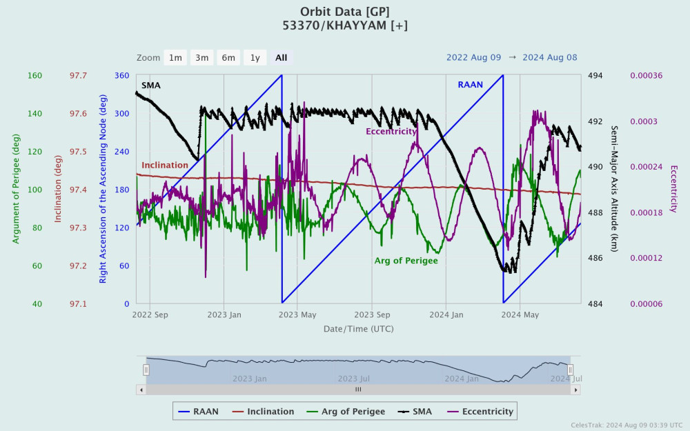 За ним НОРАД очень пристально наблюдает - за 107 дней 503 набора TLE.