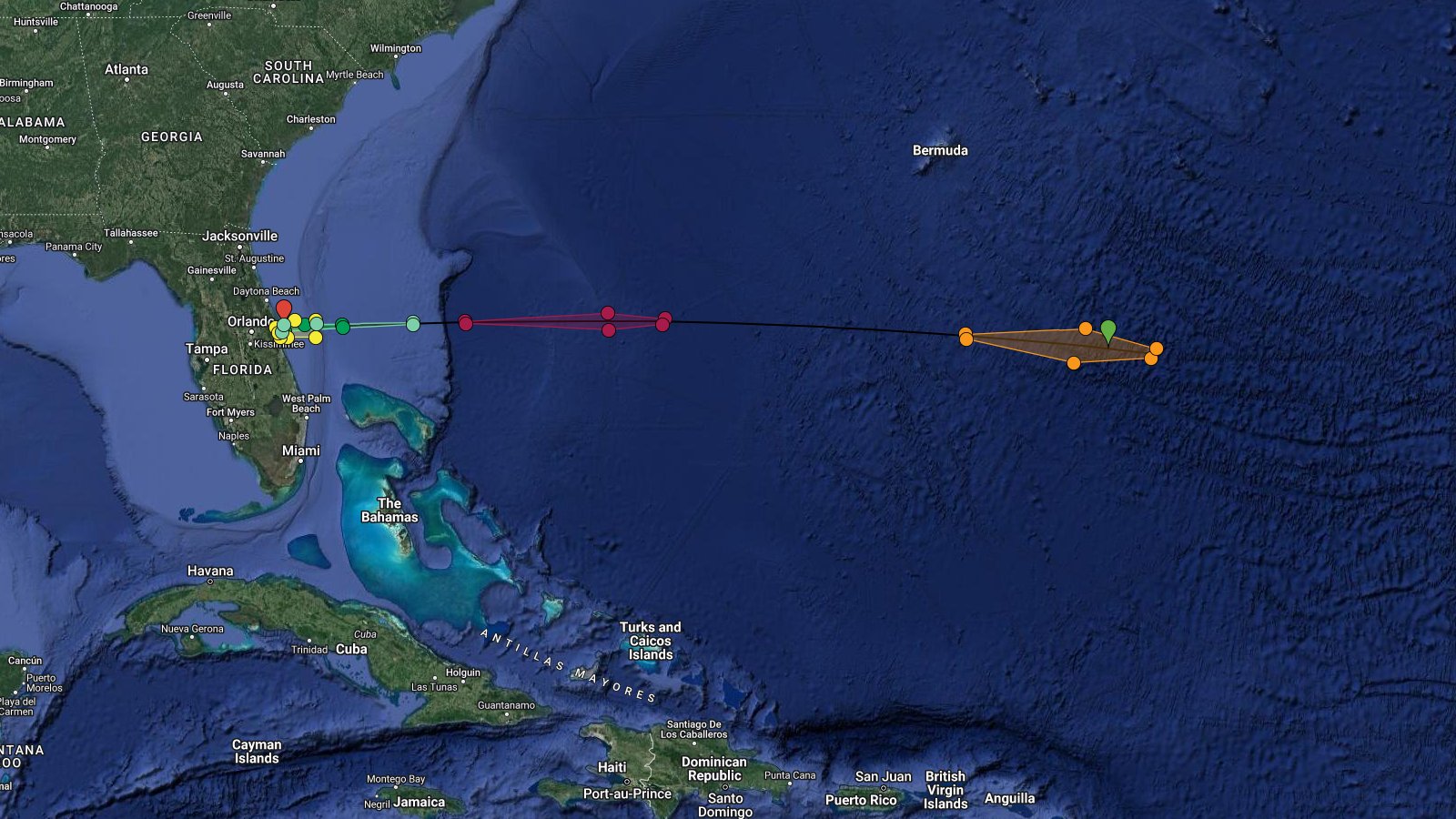 Launch Hazard Areas for #FalconHeavy #ViaSat-3.1 mission from KSC LC-39A NET 26 Apr 23:29 UTC, altern. 27 Apr to 02 May according NOTAM/NOTMARs. Expendable flight for CC-B1068.1, NY-B1052.8, PY-B1053.3 boosters. Estimated fairing recovery ~1950km downrange.http://bit.ly/LHA-24