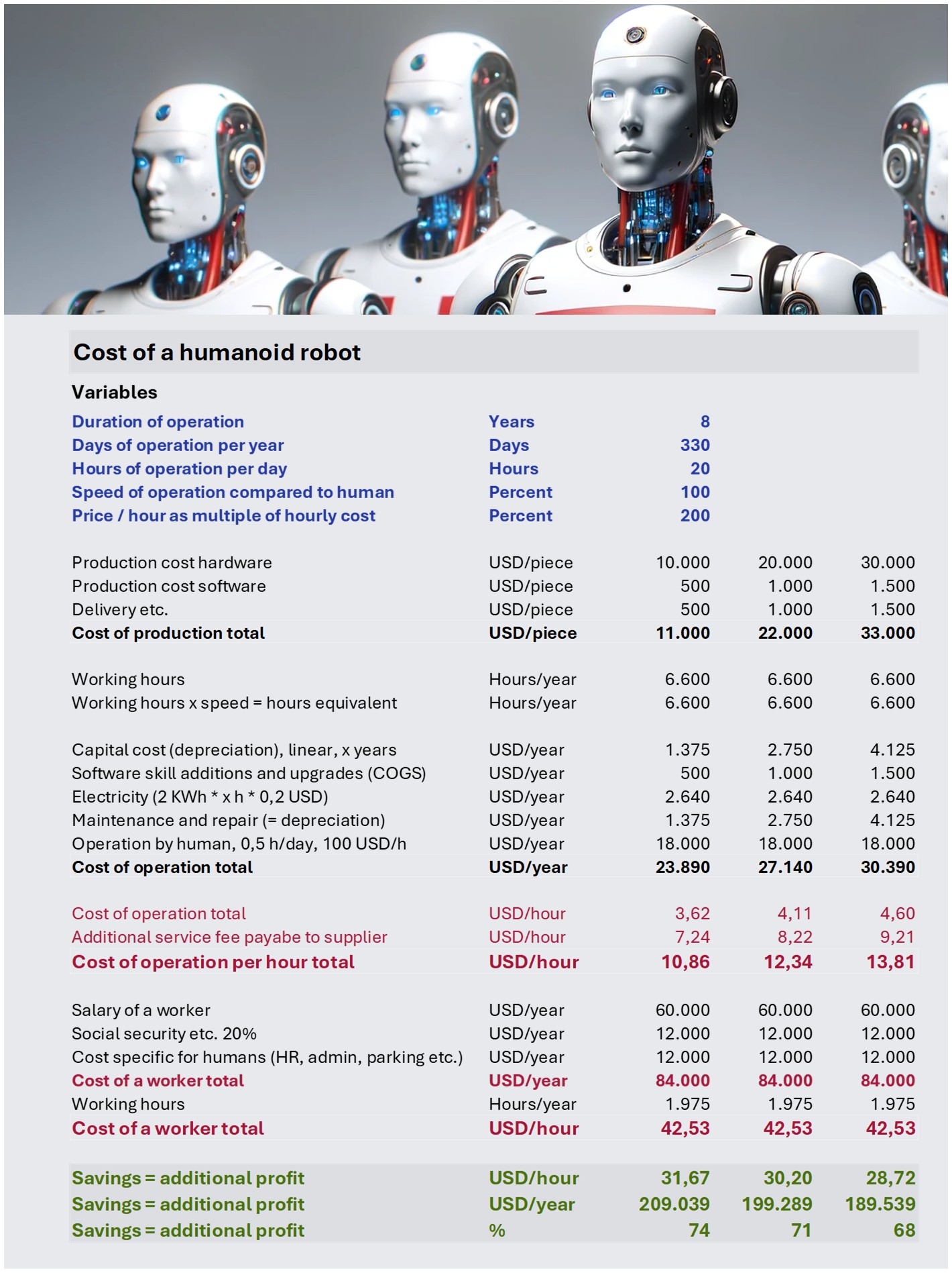 Ну т.е. понятно что робот стоящий вменяемые деньги, не дороже 40 тысяч - будет отлично окупаться при замене человека. Вначале на самых простых монотонных работах, но постепенно область применения будет расширяться, уж очень вкусная разница в цене труда.
