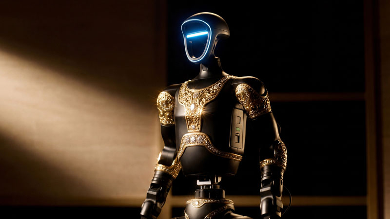 Российский люксовый бренд Caviar представил проект человекоподобного робота «Аладдин», оформленного в восточном стиле. В основе проекта лежит серийно выпускаемый робот Unitree G1 компании Unitree Robotics. Компания Caviar, верная своему подходу в украшении золотом и каменьями современных электронных гаджетов, перенесла опыт кастомных скинов на робототехнику, демонстрируя притягательную силу роскоши в самых неожиданных проявлениях.