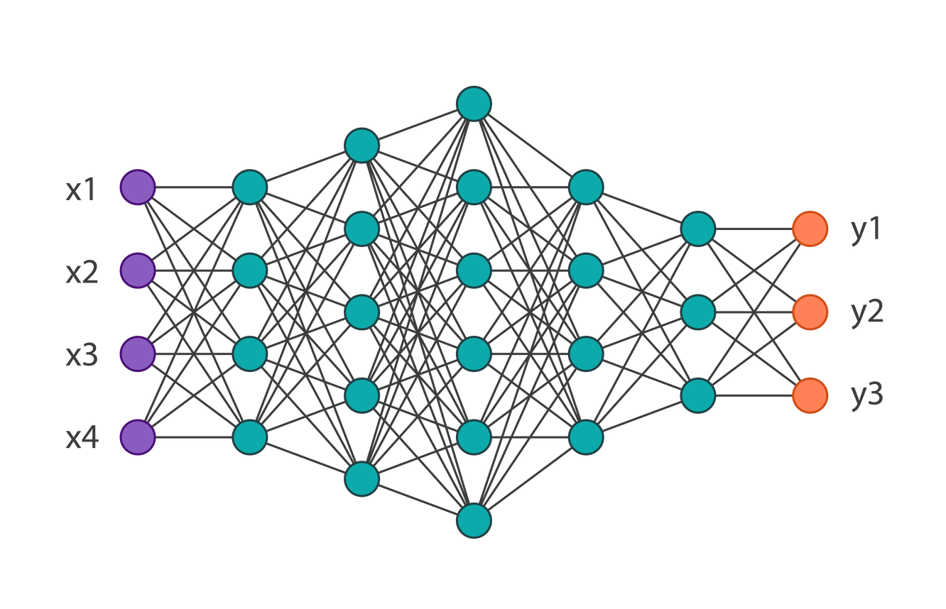 Вот смотри, тут на схеме нейроны соединены, но на "входе" в каждый нейрон (кроме фиолетовых) стоит функция, которая активирует найрон, после чего он принимает в себя данные от соседних нейронов. Т.е. на самом деле нейросети тоже очень гибкие. Например, в одном случае может активироваться 3 из 4-х нейронов первого слоя и 2 из пяти нейронов второго слоя, в другом случае активируются 2 из 4-х нейронов первого слоя и 4 из пяти нейронов второго слоя. А ведь если ещё учесть, что каждый нейрон - это линейная функция и может возвращать число с плавающей запятой, то поведение становится совсем сложным.