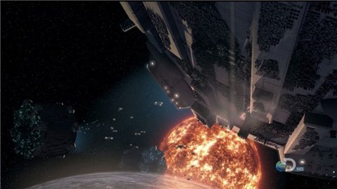 Страшные инопланетяне-скитальцы-пожиратели  собирают всю энергию солнца (зведны) окружив ее такой плотной сферой из спутников (все показано) и концентрирутют энергию  в маленькую такую ды-р-дочку... куда и прыгают всей сворой...