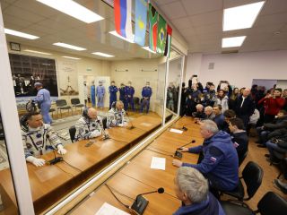 Встретят Олега Артемьева, Дениса Матвеева и Сергея Корсакова находящиеся на борту Международной космической станции космонавты Роскосмоса Антон Шкаплеров и Пётр Дубров, астронавты NASA Марк Ванде Хай, Раджа Чари, Томас Маршбёрн и Кайла Бэррон, а также астронавт Европейского космического агентства Маттиас Маурер.