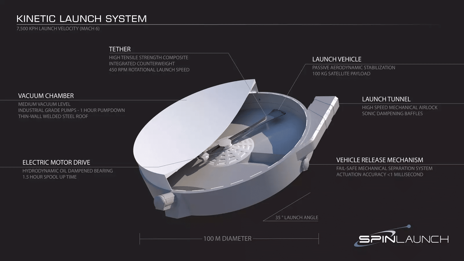 SpinLaunch — американская фирма, занимающаяся разработкой космической системы запуска с использованием кинетической «катапульты». Компания утверждает, что их кинетическая система позволит сэкономить на запусках ракет при одновременном увеличении частоты стартов. В предложенной технологии используется центрифуга с вакуумным уплотнением, которая вращает ракету, а затем выбрасывает ее в небо со скоростью до 8000 километров в час. Затем ракета запускает двигатели на высоте примерно 60 километров, чтобы достичь скорости в 28 200 километров в час и выйти на орбиту Земли.