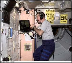 Конечно есть , правда американский .  В Хьюстоне сделали защищенный канал для сброса данных , и мы теперь вечерами читаем новости (телевизора-то нет) .  Вот меня Майк сфотографировал в Юнити у лэптопа.