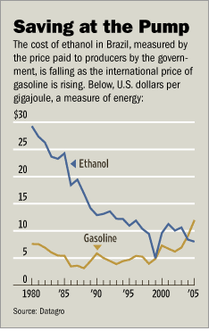"At current prices, Brazil can make ethanol for about $1 a gallon, according to the World Bank. That compares with the international price of gasoline of about $1.50 a gallon."