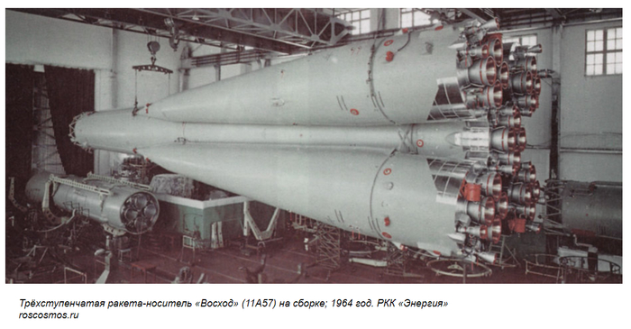 А еще от вершины бокового блока по кислородному баку Блока А не идет кабельный канал. А это признак того, что на кадре не гагаринский 8К72К, а 8К72 с собачками, а может даже и с лунниками (обтекатель не виден).