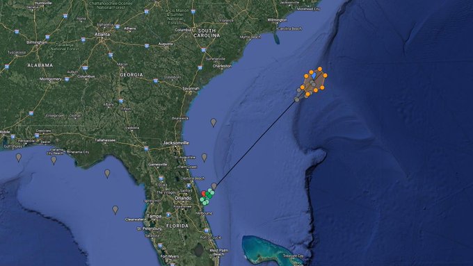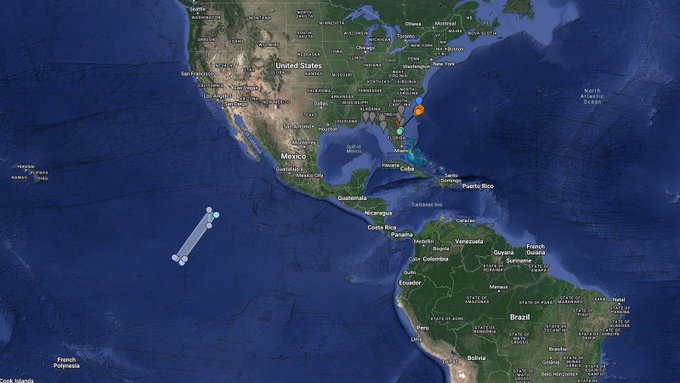 LHA map for #Polaris Dawn Dragon2 mission from LC-39A NET 27 Aug 07:38 UTC, alternatively 28 Aug to 01 Sep based on issued NOTMAR/NOTAMs. Estimated B1083.4 landing 575km downrange. Stage2 debris reentry on the first orbit to the Area in East Pacific. http://bit.ly/LHA-40