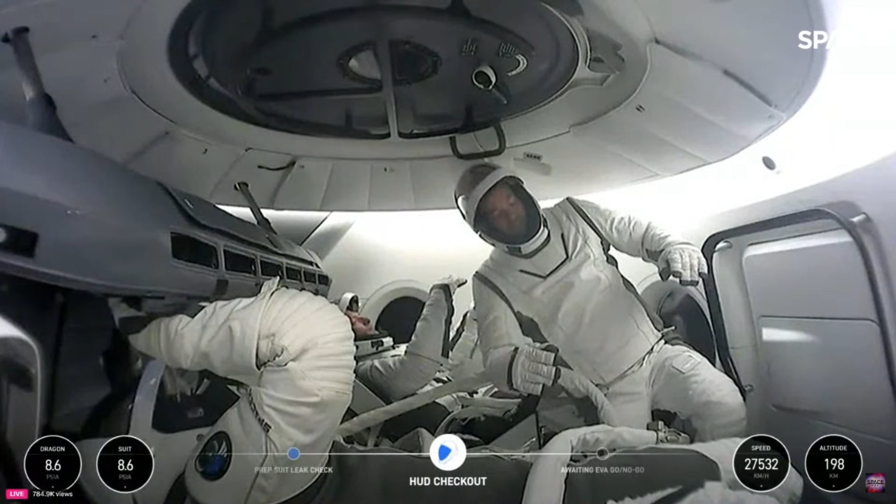 По теме - основная цель декларируется как 2x15 минут на тестирование скафандров в реальных условиях, при этом максимально постараться учесть/минимизировать риски (поэтому никто не отлетает от дракона). В конце концов, еще минимум две миссии запланировано на более продвинутые активности.
