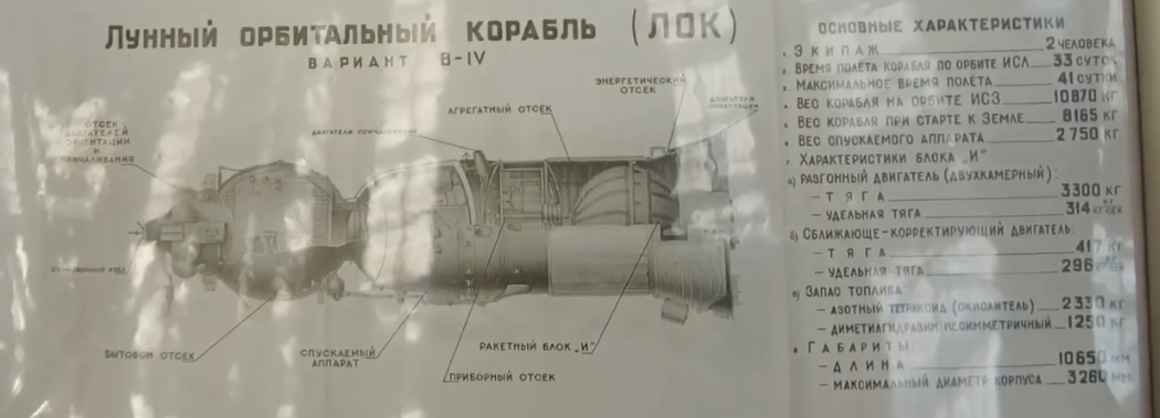 Я нашел эту схему ЛОК, вариант B-IV (не имею представления, что это означает), распечатанную и выставленную перед БО ЛОК в музее ЗЕМ. Поэтому качество плохое, это фотография фотографии, но хорошо видно, что это отсканированный оригинал. Здесь указаны массы 10870 кг (до отправления на Луну) и 8165 кг (до отправления на Землю) :