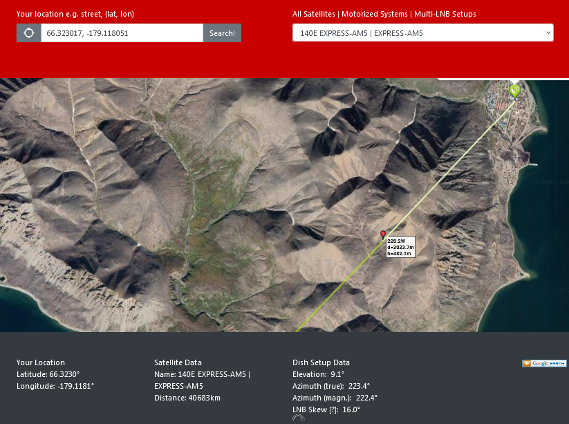 в Эгвекиноте, конечно, есть особенность - ровно на том азимуте (на 140)  сразу за посёлком растут горки немалой высоты (до 500+ метров).