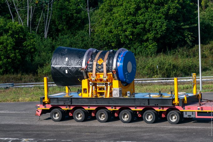 The third stage for the Vega-C flight that will rocket #Sentinel1-C to orbit in December has arrived at the launch pad @EuropeSpacePort.