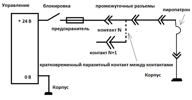 Например, если тот злополучный концевик люка коммутировал минус пиропатронов отстрела БО.
