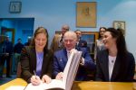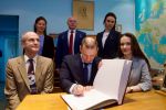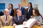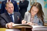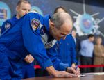 Утро понедельника экипажи корабля «Союз МС-25» встретили походом в Музей ЦПК. В Мемориальном рабочем кабинете Юрия Гагарина космонавты Олег Новицкий и Иван Вагнер, участники космического полета Марина Василевская и Анастасия Ленкова, астронавты Трейси Дайсон и Дональд Петтит оставили в памятной книге предстартовых записей свои автографы, а после по традиции посетили Красную площадь.