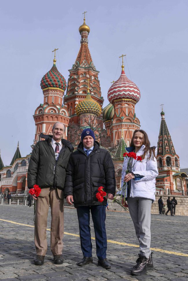 У Кремлевской стены экипажи и работники ракетно-космической отрасли возложили цветы к захоронениям Юрия Гагарина и Сергея Королева, почтили память великих первопроходцев в пилотируемой космонавтике.