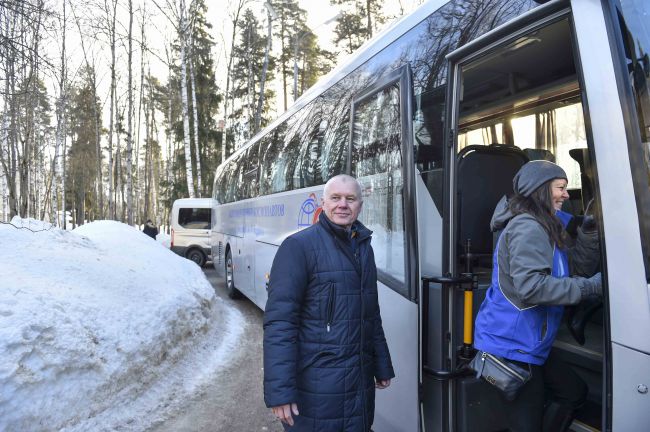Экипажи заняли свои места в автобусе и отправились на аэродром Чкаловский, откуда будет осуществлен перелет на Байконур для прохождения завершающего этапа предстартовой подготовки.