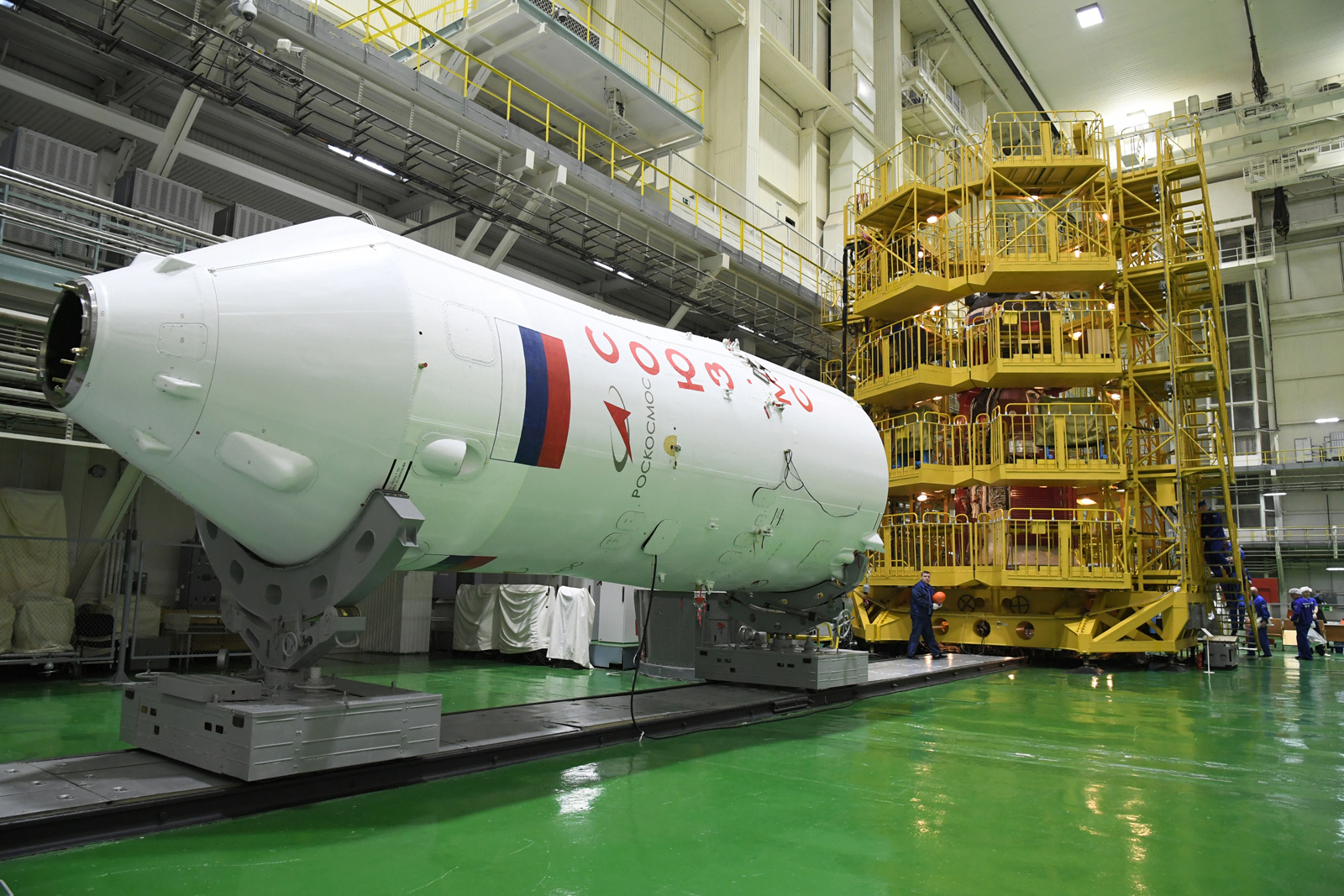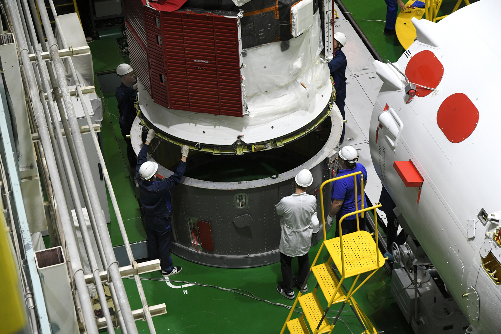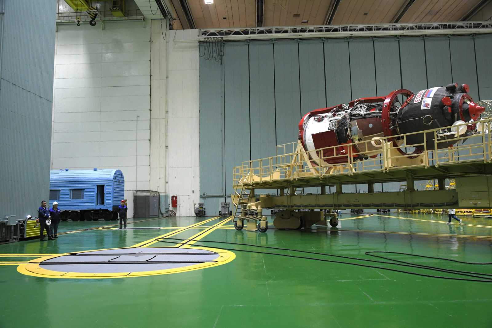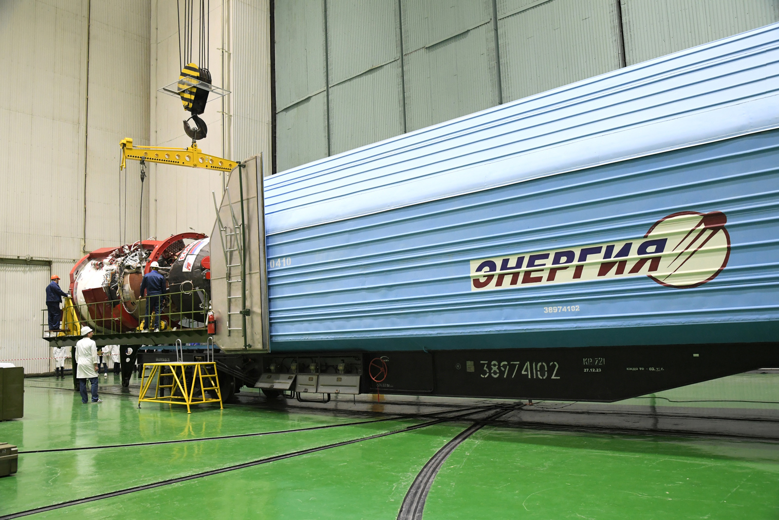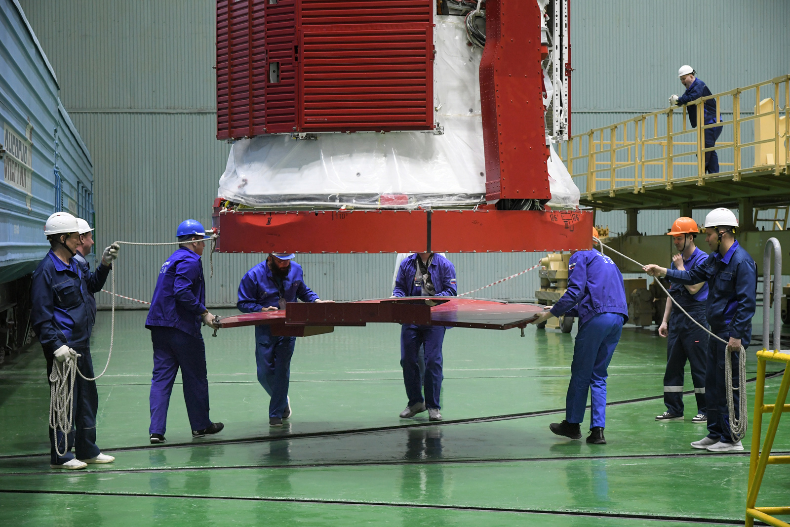 Специалисты Роскосмоса выполнили комплекс технологических операций по погрузке и отправке корабля в монтажно-испытательный корпус 31-й площадки, где провели подготовку головного блока к сборке ракеты «Союз-2.1а».