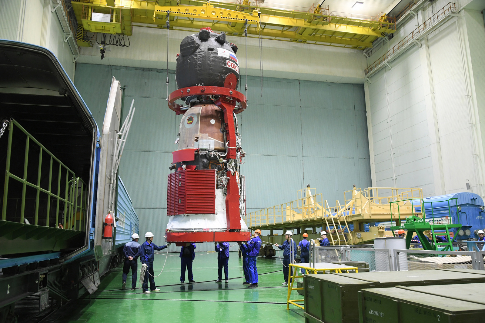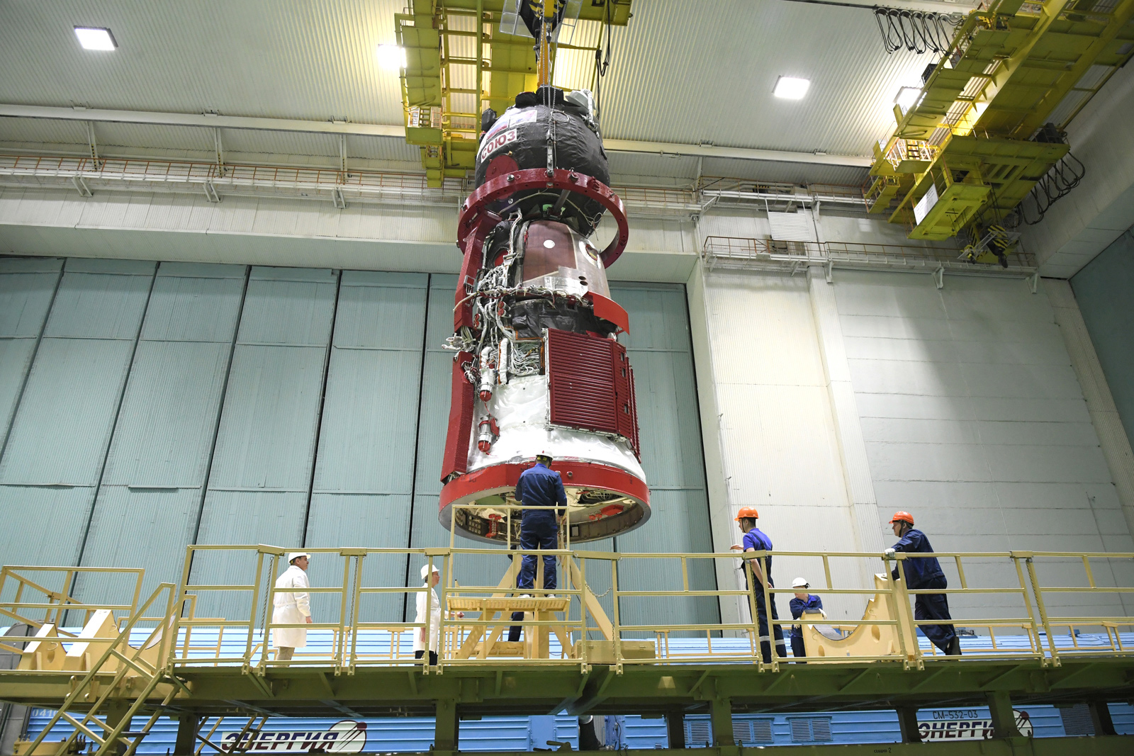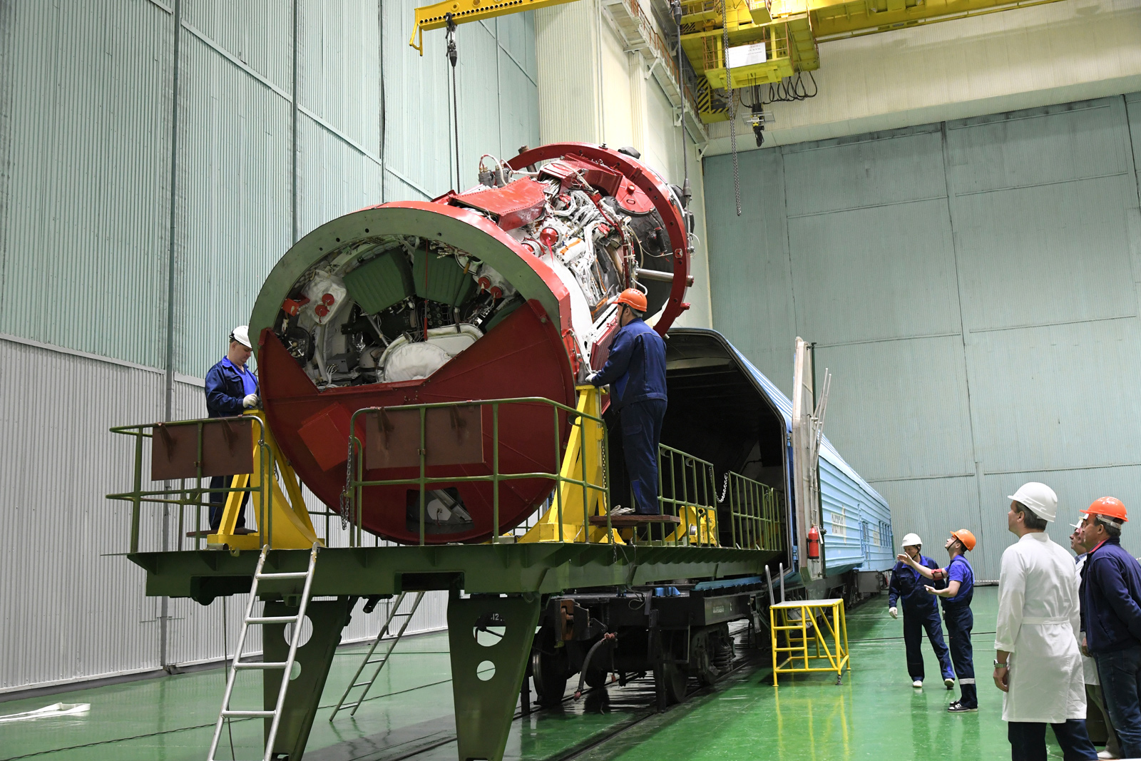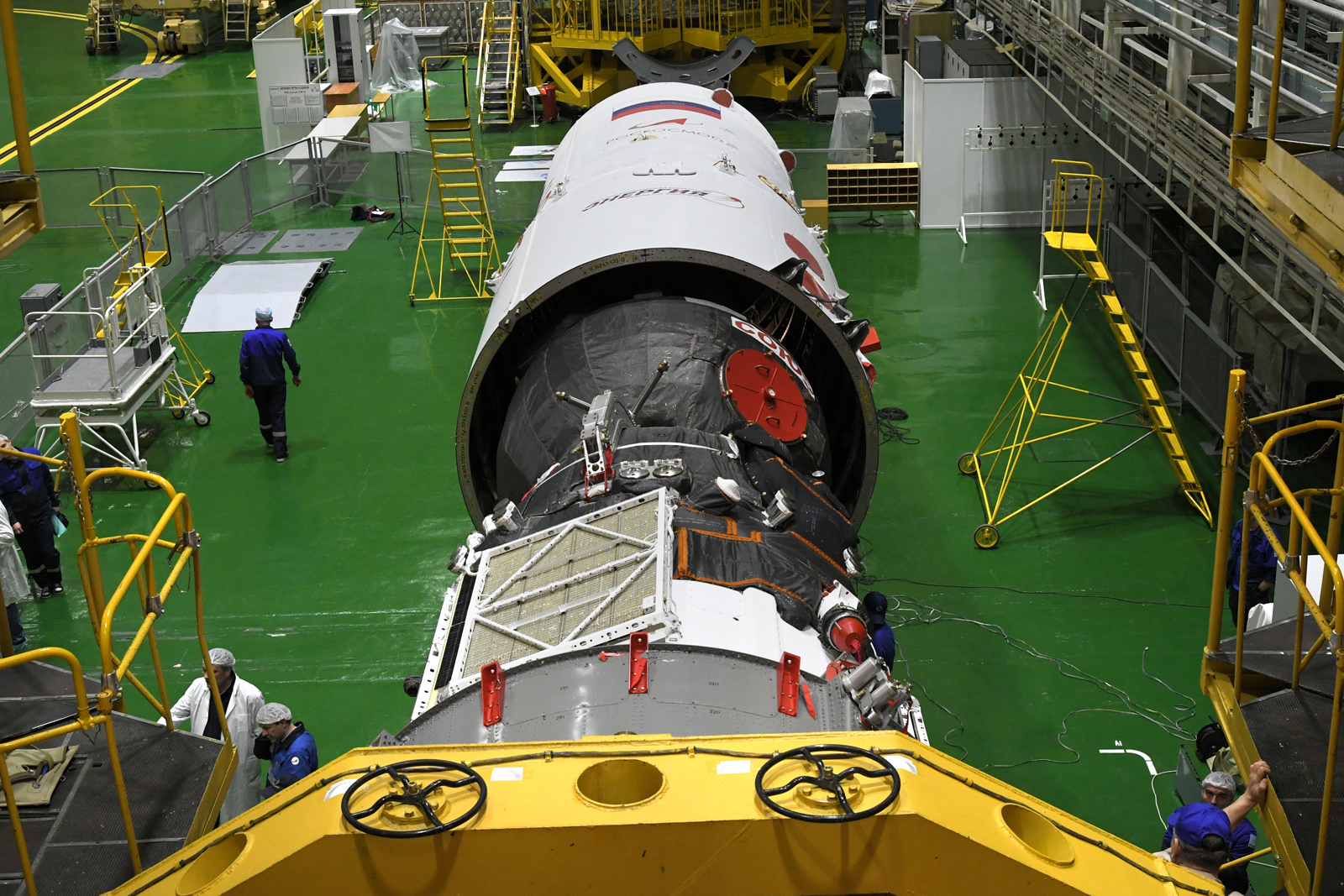 Специалисты Роскосмоса выполнили комплекс технологических операций по погрузке и отправке корабля в монтажно-испытательный корпус 31-й площадки, где провели подготовку головного блока к сборке ракеты «Союз-2.1а».