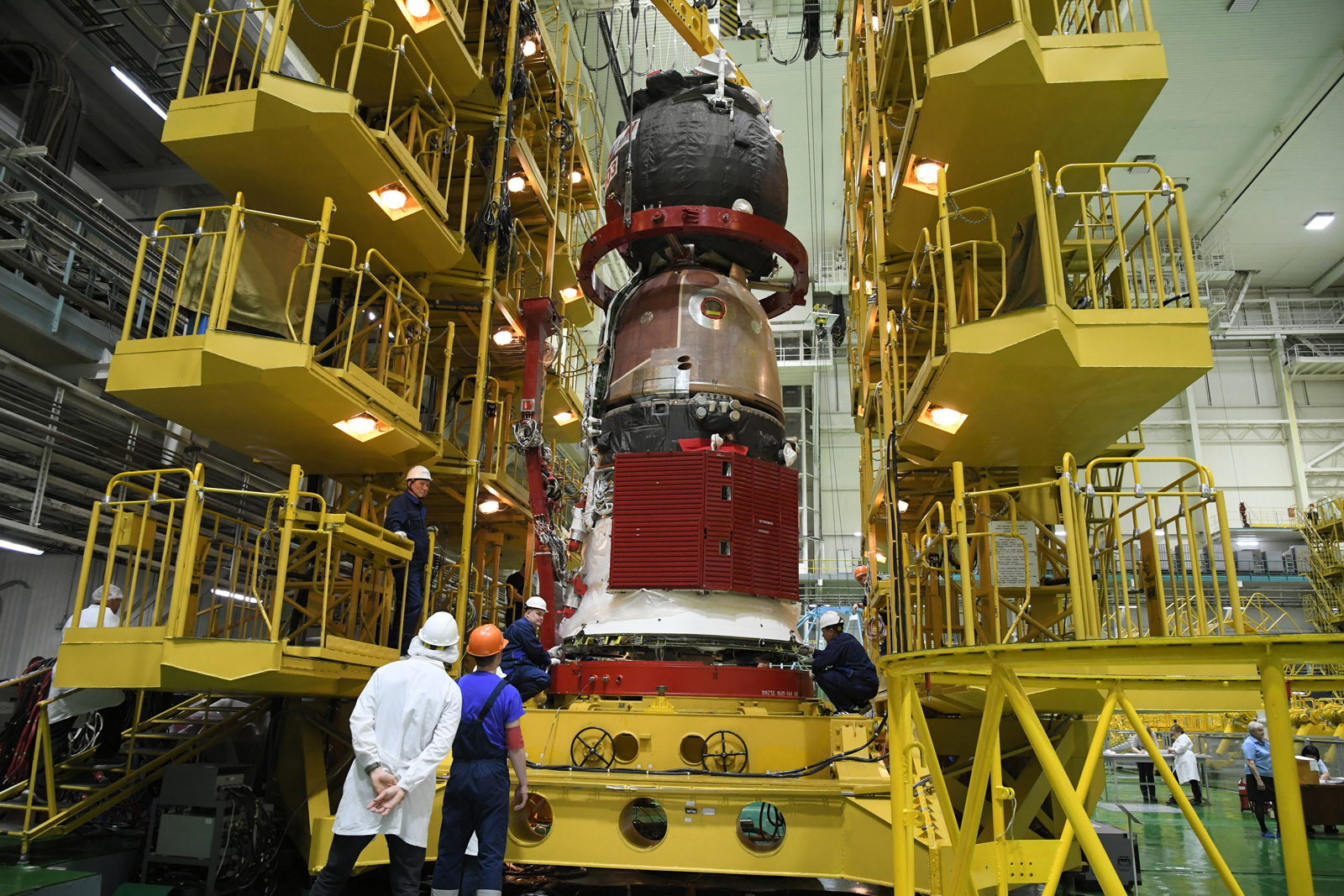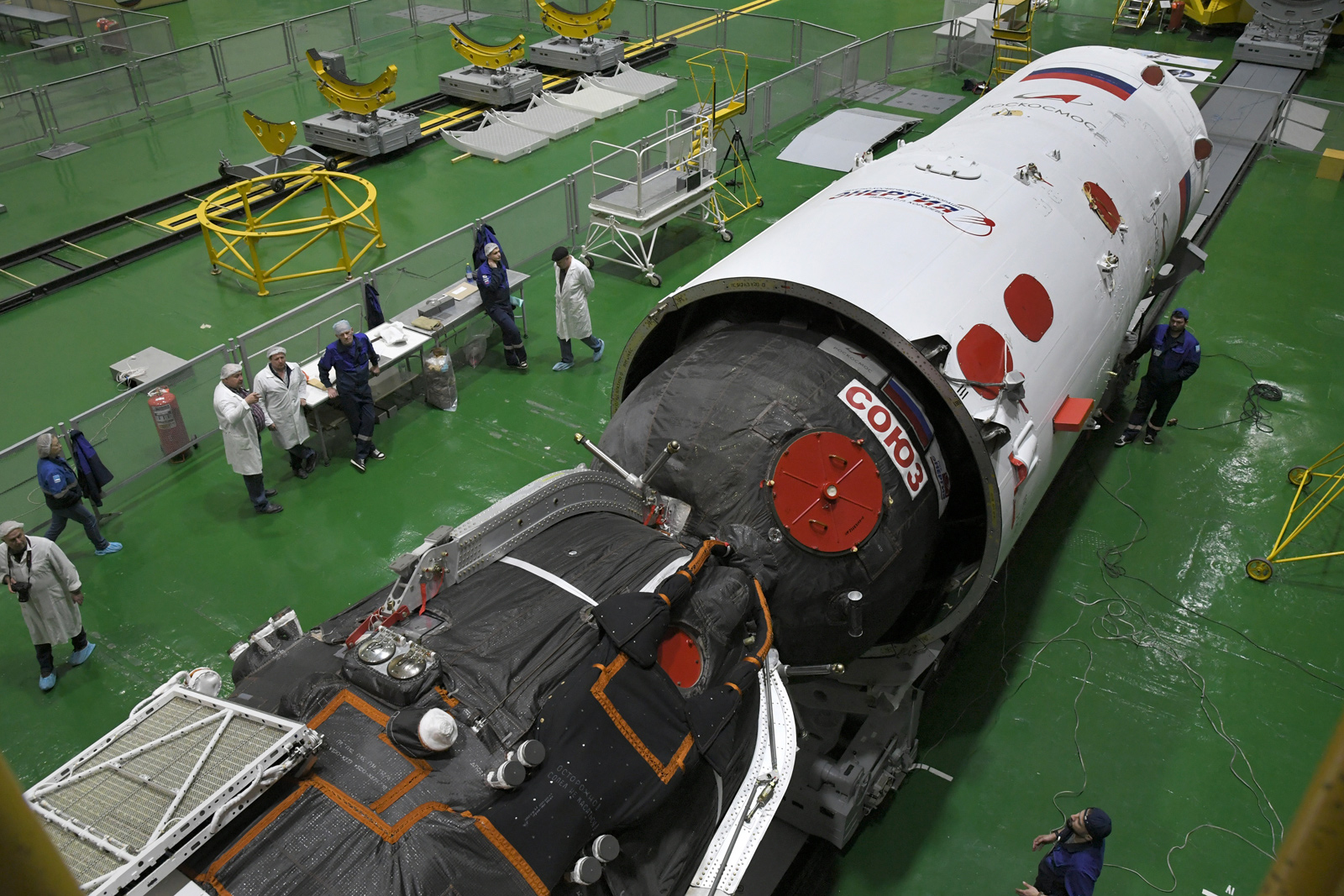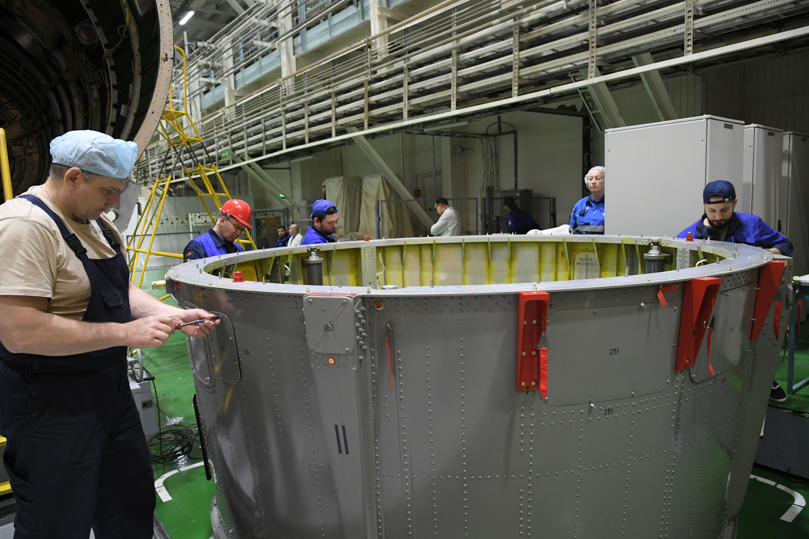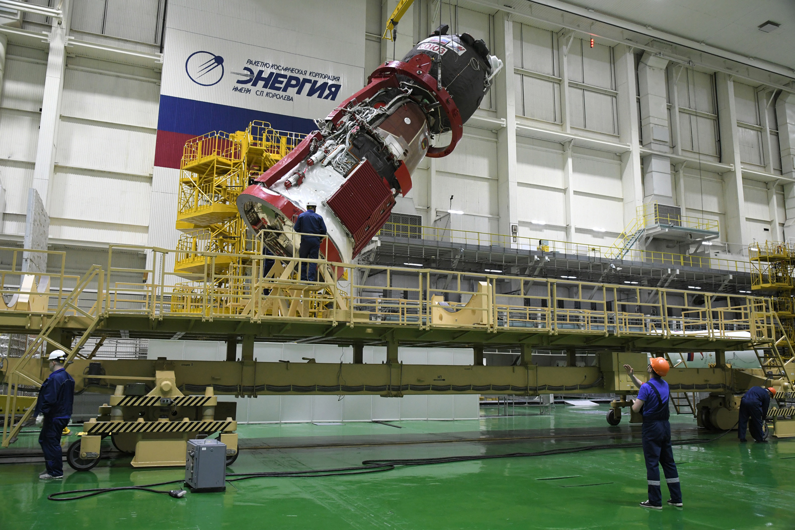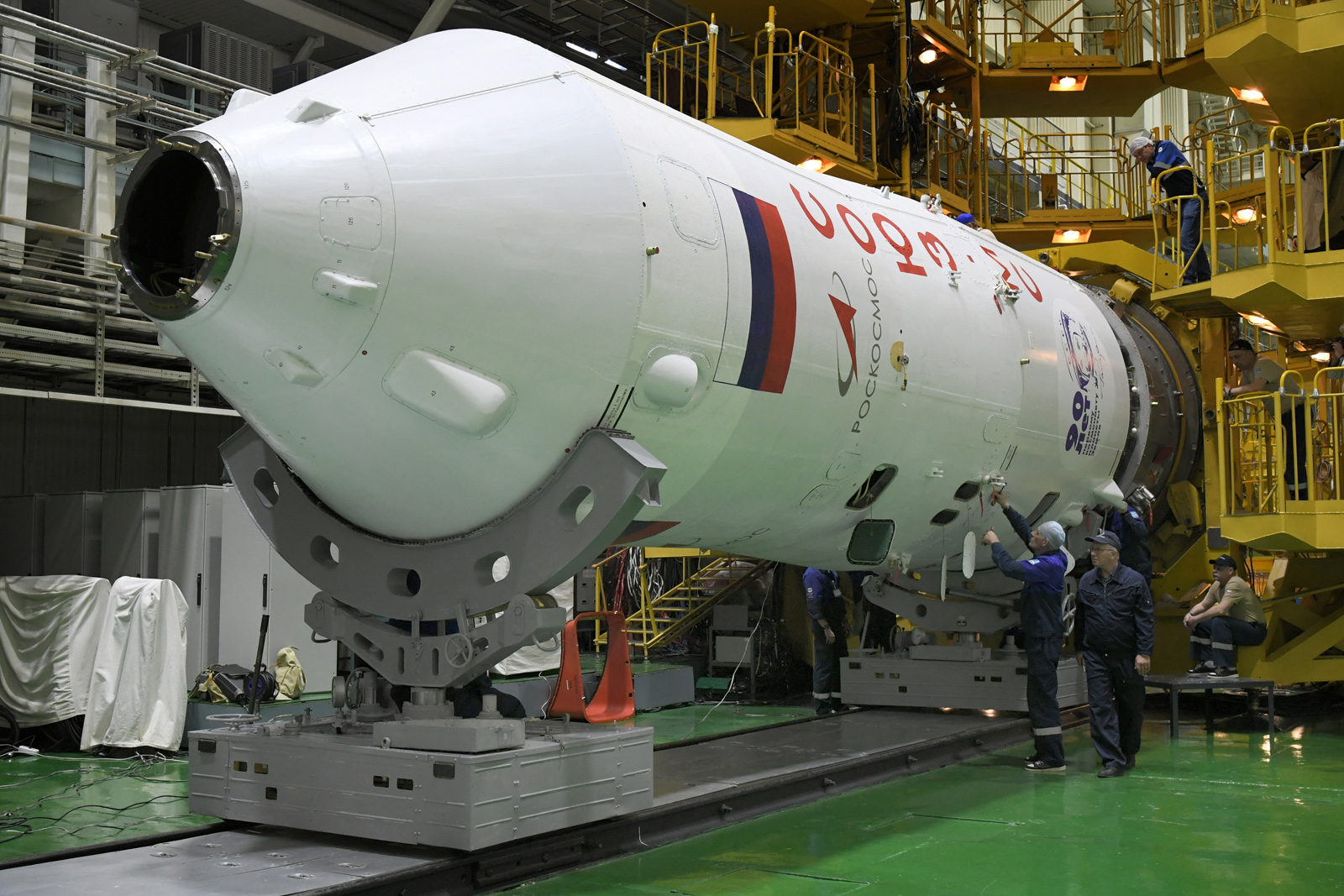 Специалисты Роскосмоса выполнили комплекс технологических операций по погрузке и отправке корабля в монтажно-испытательный корпус 31-й площадки, где провели подготовку головного блока к сборке ракеты «Союз-2.1а».
