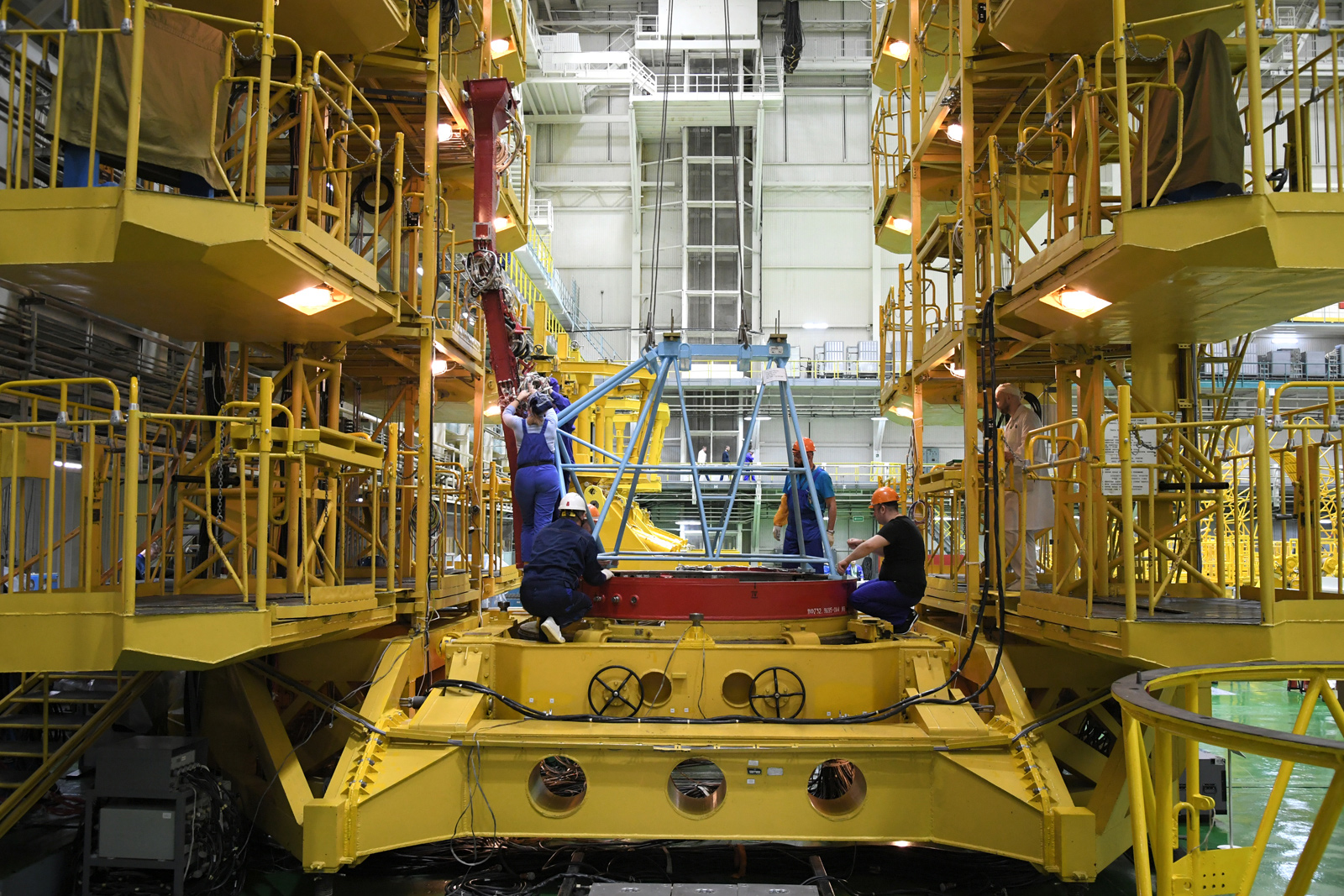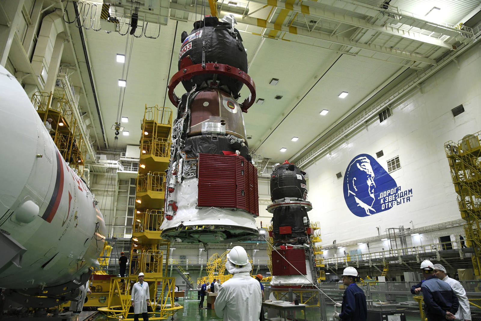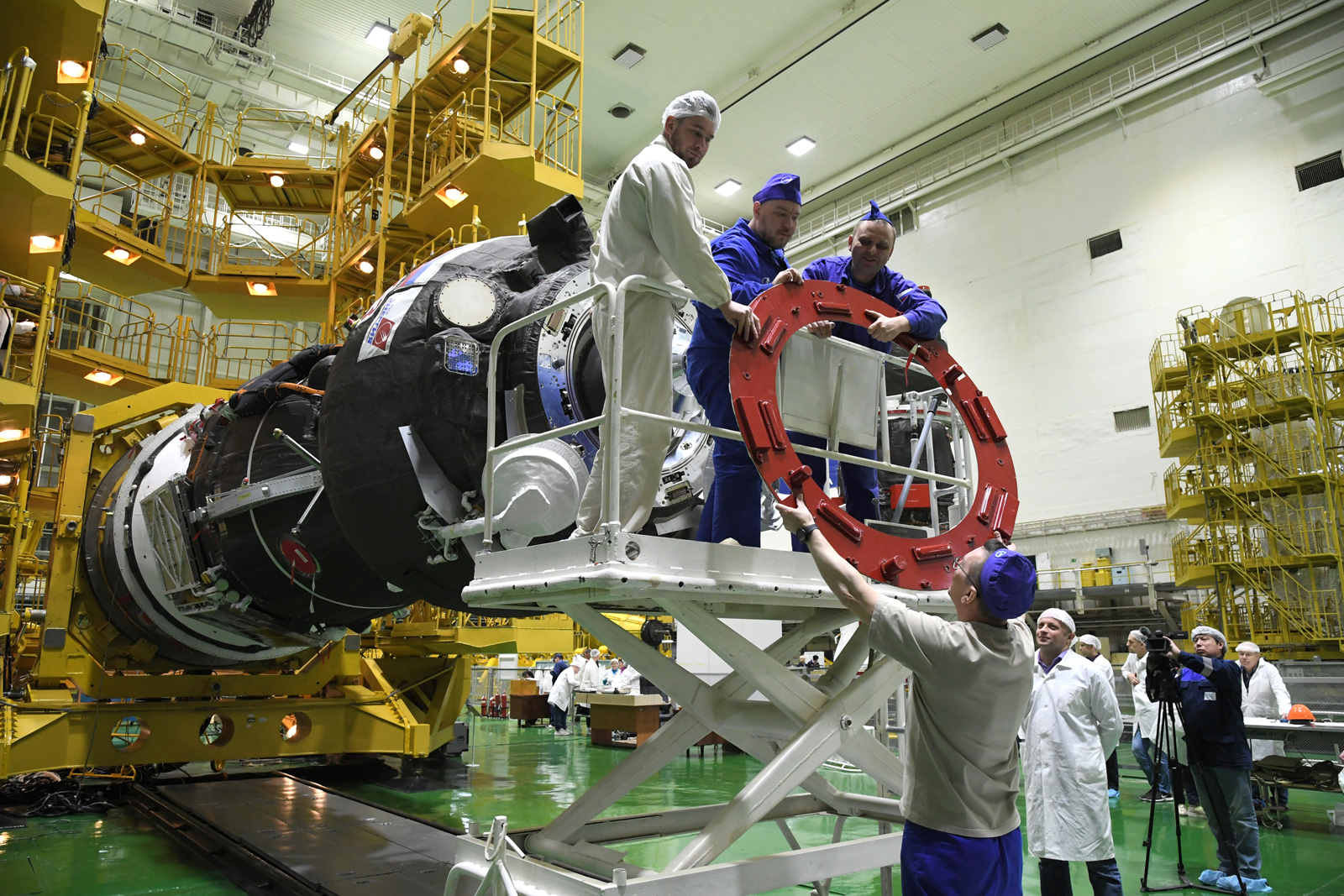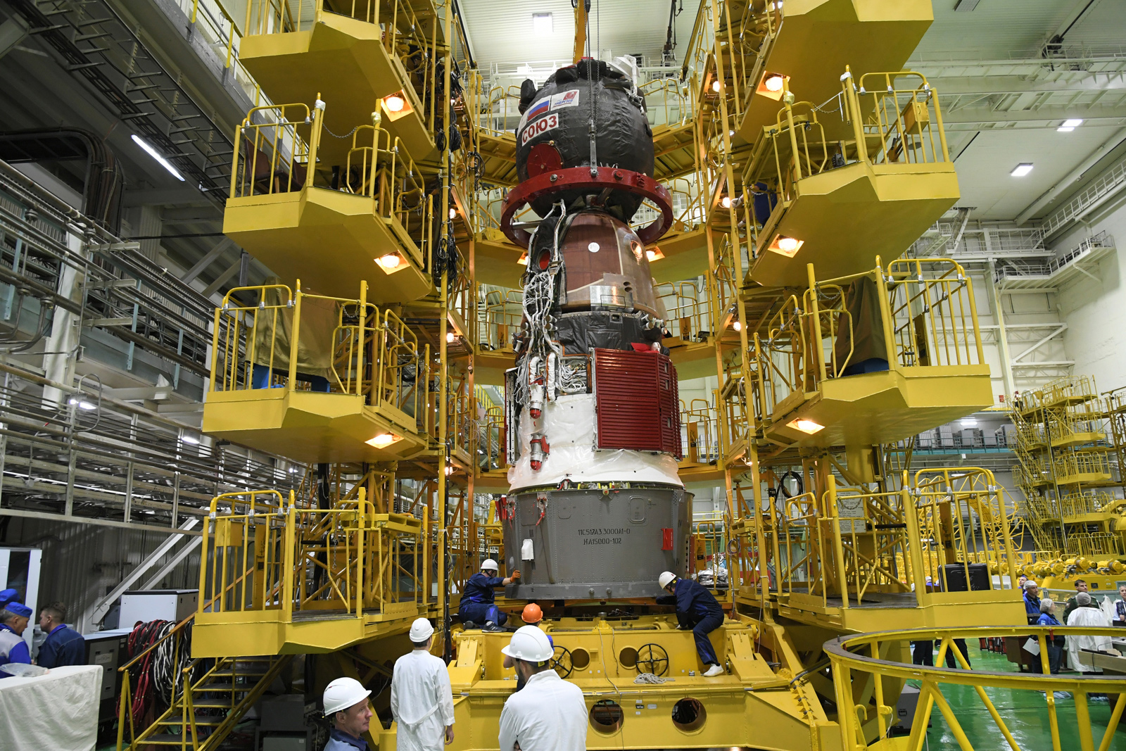 Специалисты Роскосмоса выполнили комплекс технологических операций по погрузке и отправке корабля в монтажно-испытательный корпус 31-й площадки, где провели подготовку головного блока к сборке ракеты «Союз-2.1а».