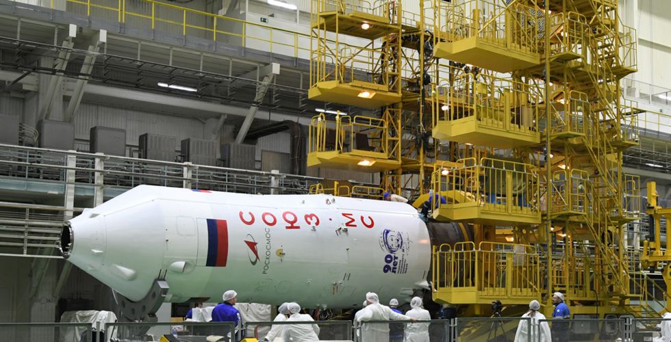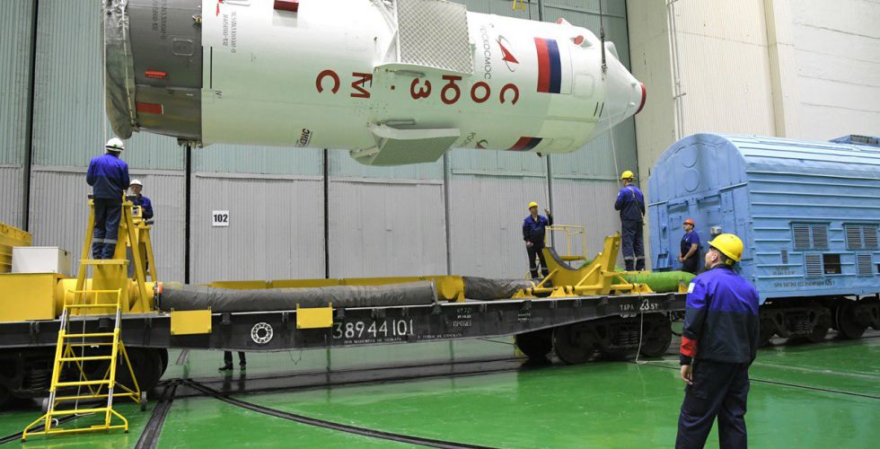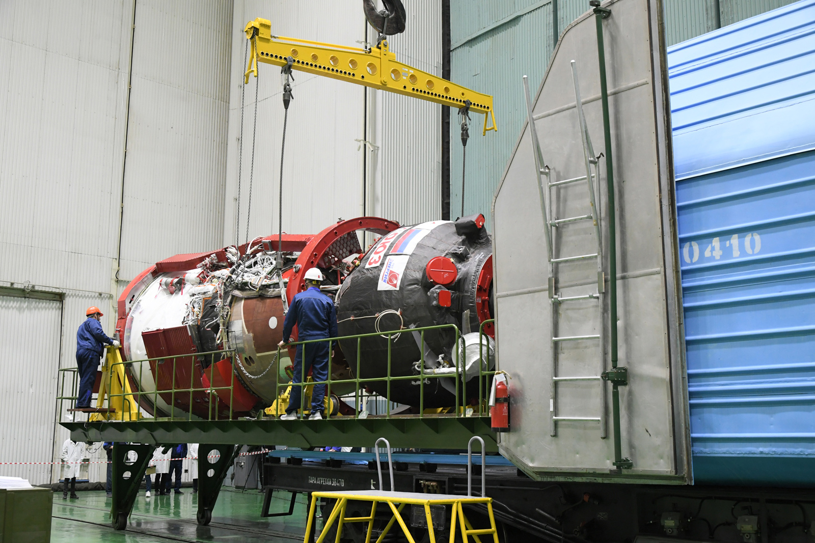 На космодроме Байконур транспортировали космическую головную часть с кораблем «Союз МС-25» на общую сборку.