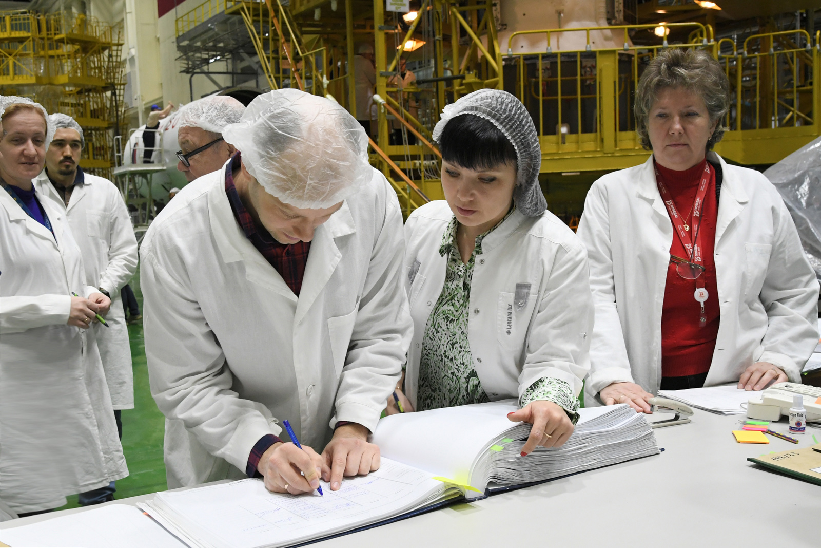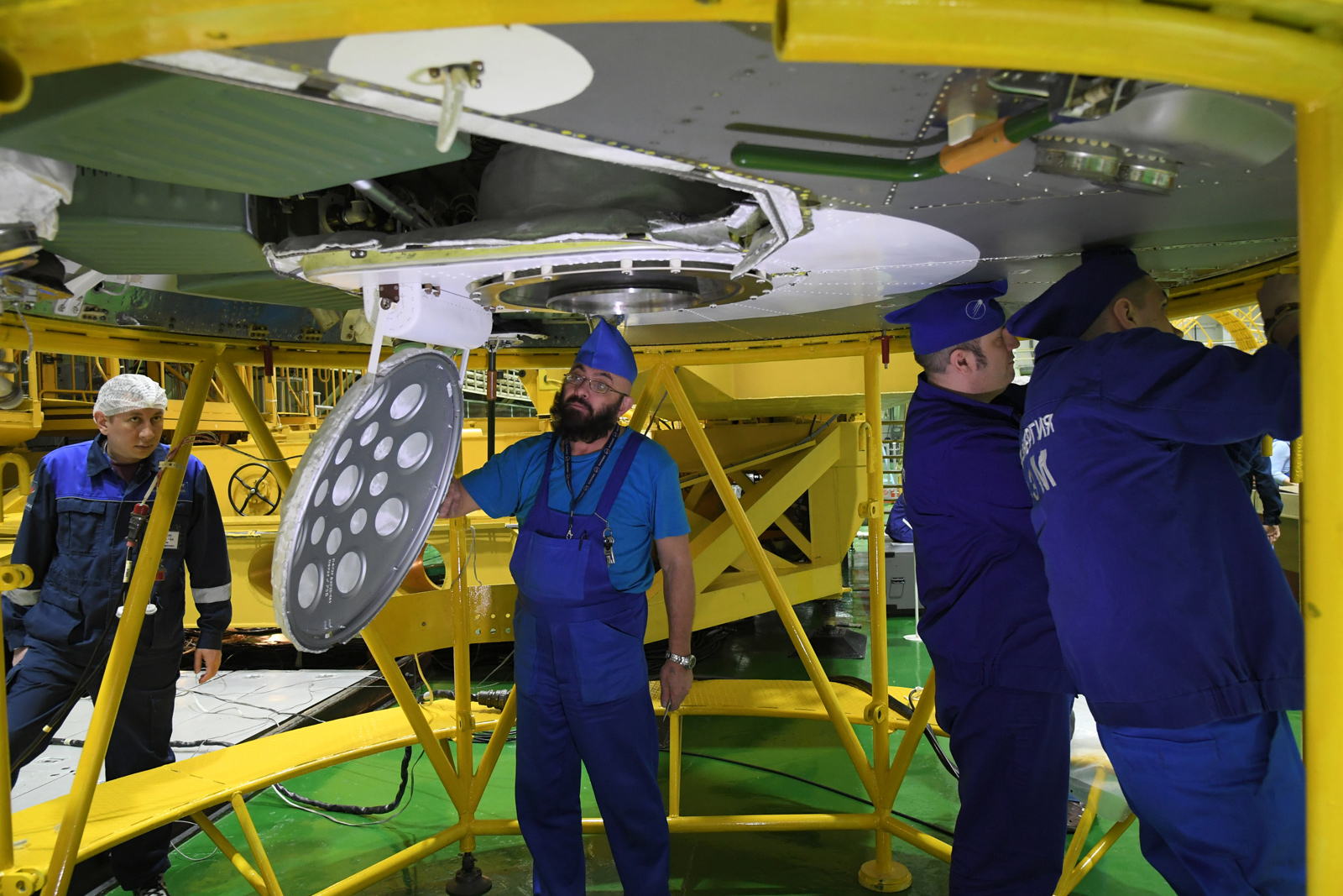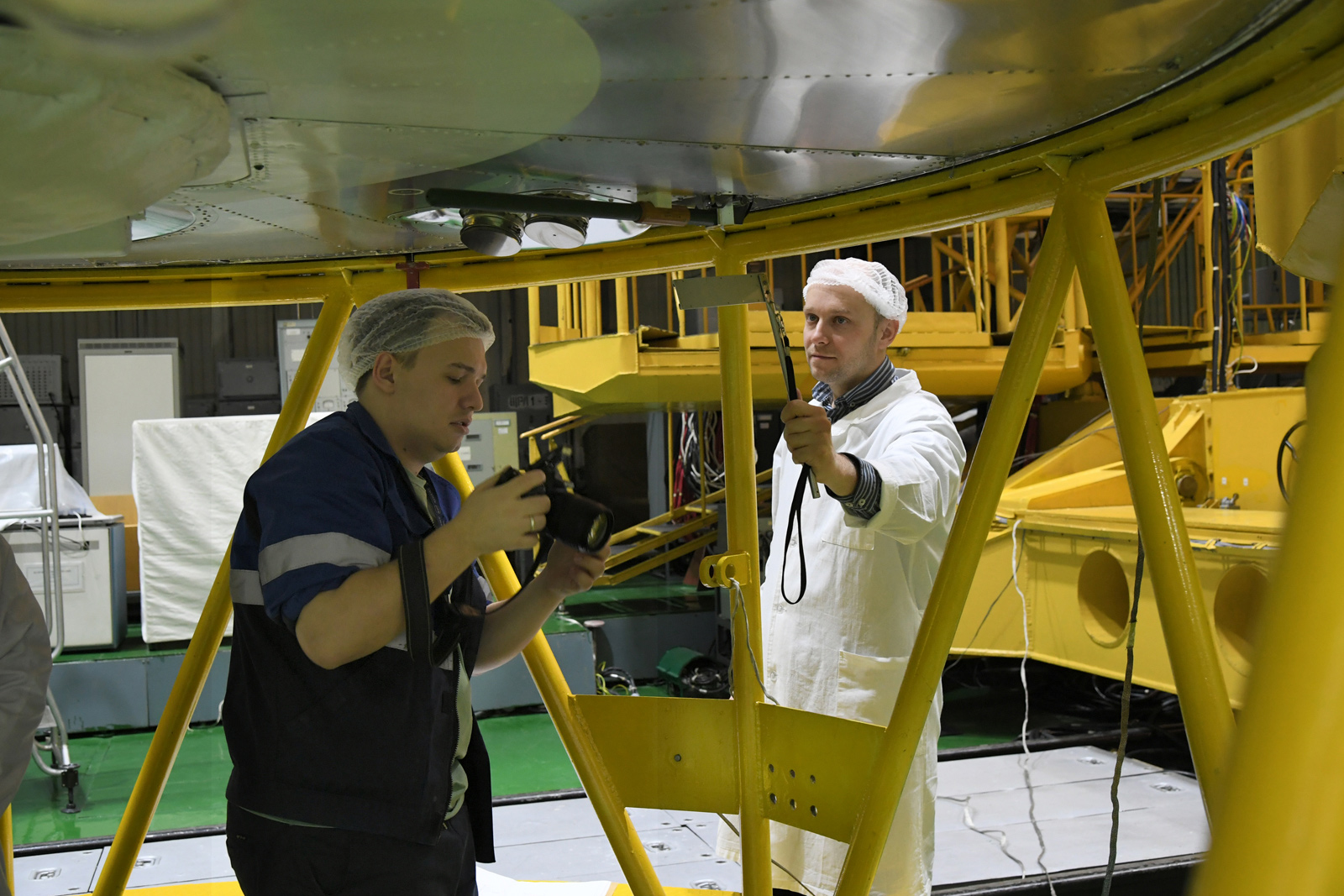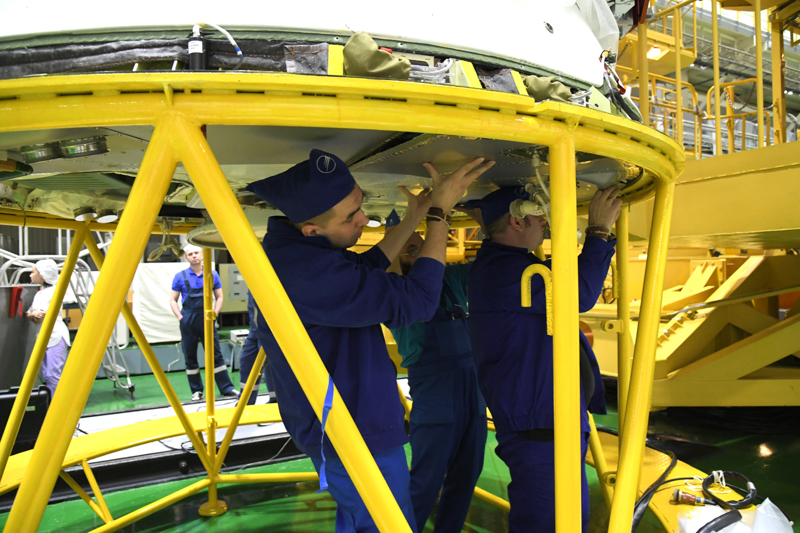 Сегодня в монтажно-испытательном корпусе 254-й площадки космодрома Байконур проведены авторский осмотр и заключительные проверки пилотируемого корабля «Союз МС-25».