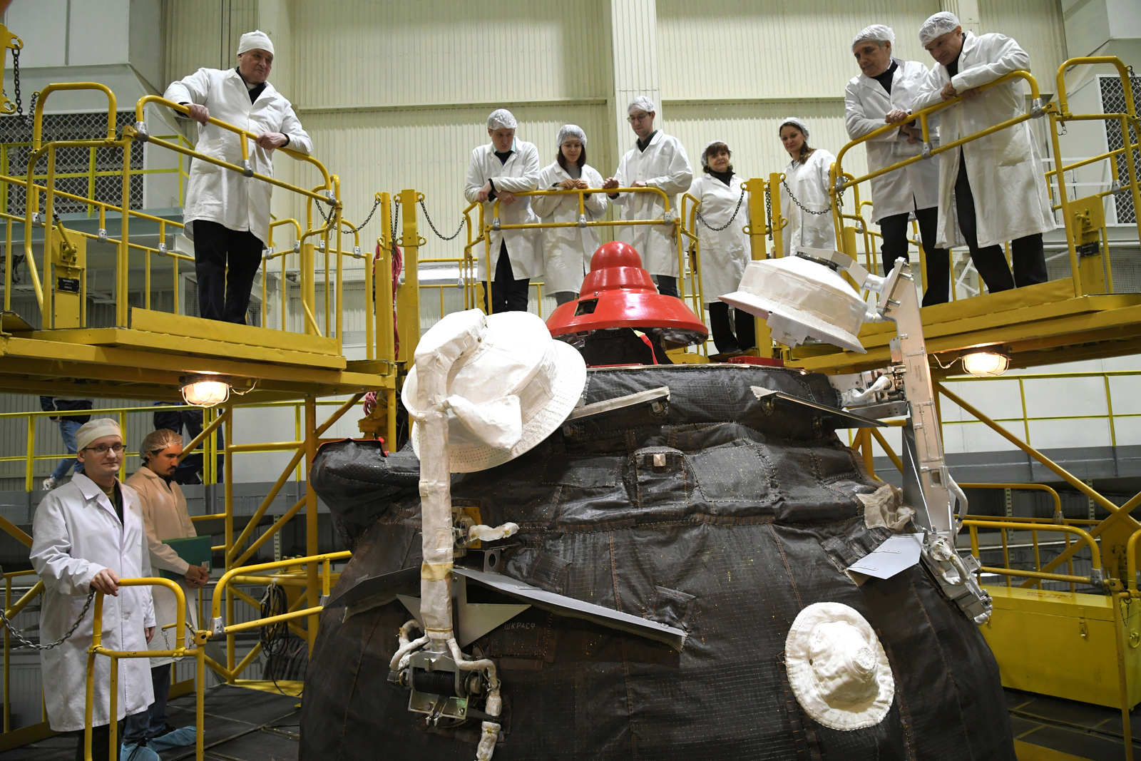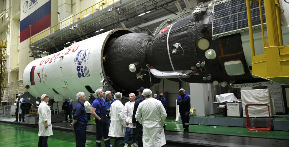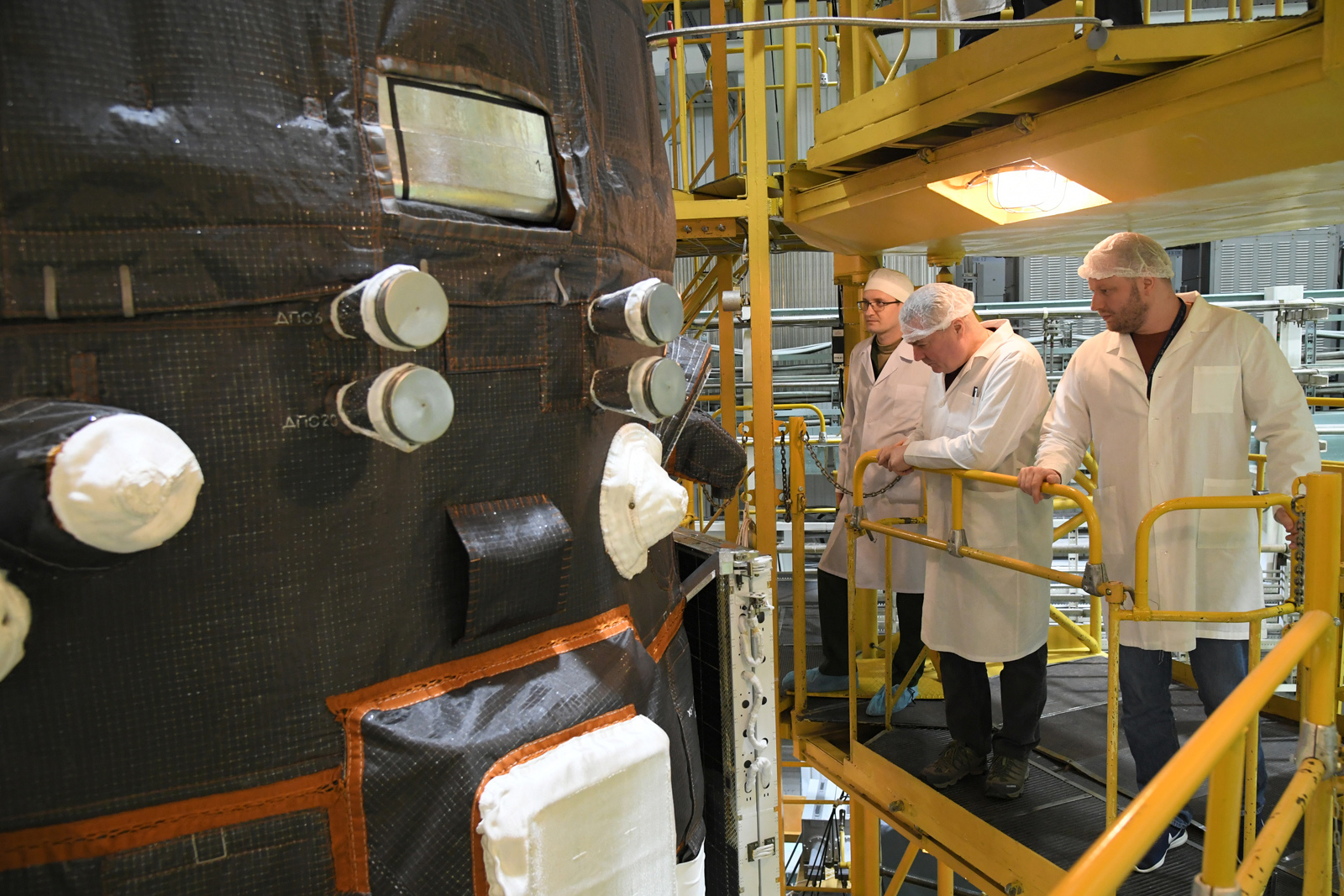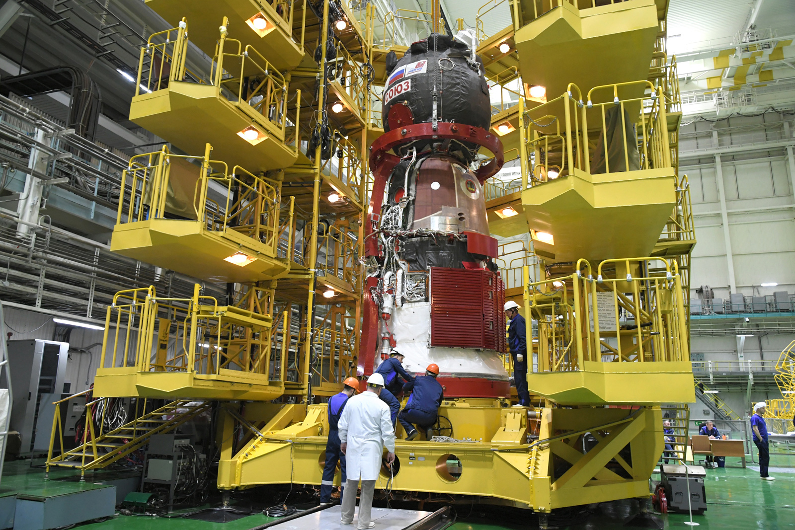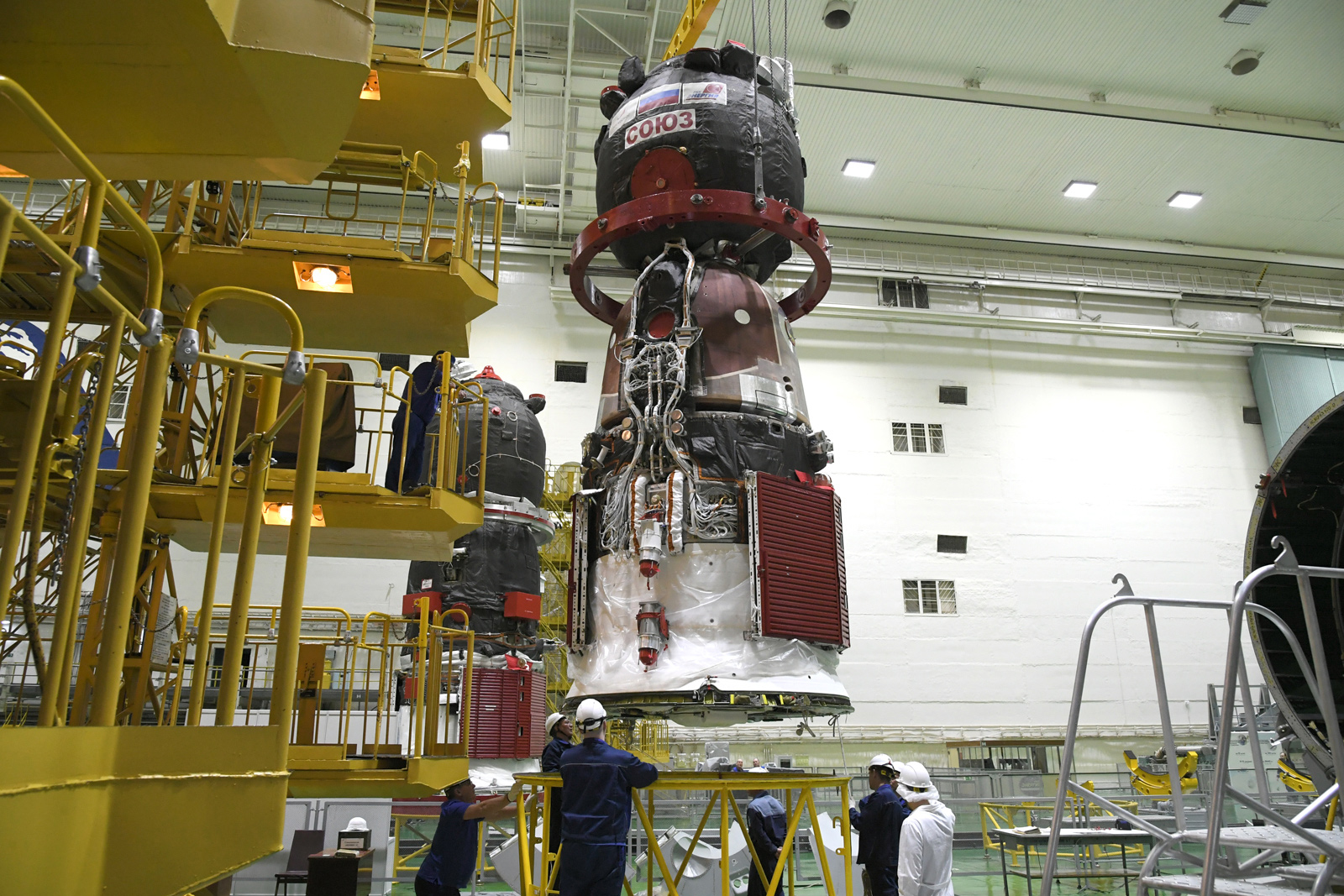 Сегодня в монтажно-испытательном корпусе 254-й площадки космодрома Байконур проведены авторский осмотр и заключительные проверки пилотируемого корабля «Союз МС-25».