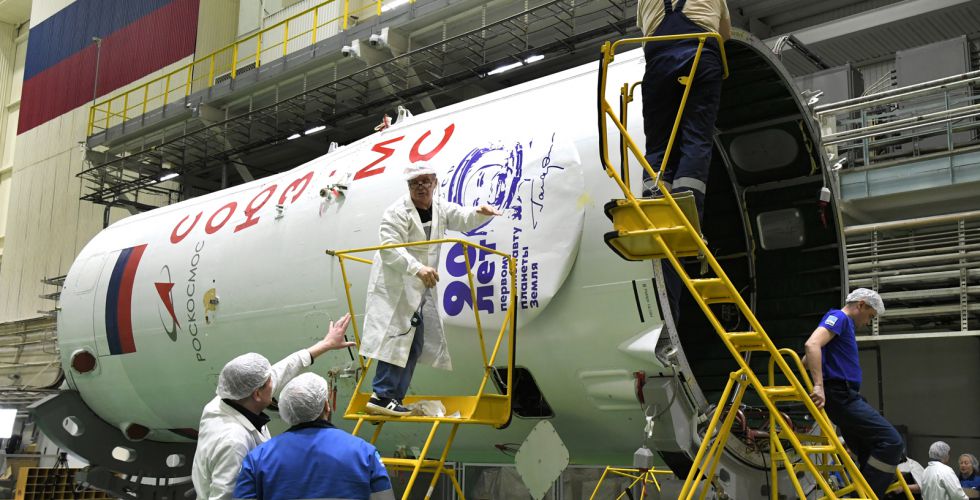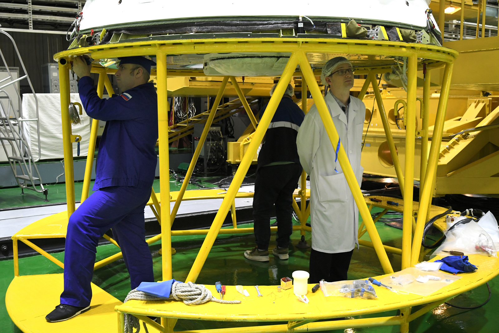 Авторский осмотр корабля «Союз МС-25» и накатка головного обтекателяАвторский осмотр корабля «Союз МС-25» и накатка головного обтекателяАвторский осмотр корабля «Союз МС-25» и накатка головного обтекателяАвторский осмотр корабля «Союз МС-25» и накатка головного обтекателя