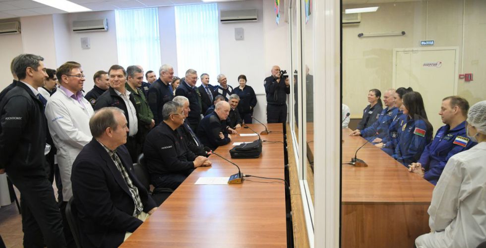 В монтажно-испытательном корпусе (МИК) площадки 254 состоялась «вторая примерка» пилотируемого корабля «Союз МС-25». После проведения вводного инструктажа космонавты по очереди заняли свои места в корабле, ознакомились с размещением снаряжения и доставляемых грузов в спускаемом аппарате и бытовом отсеке, проверили работоспособность бортовых систем в тестовом режиме.