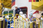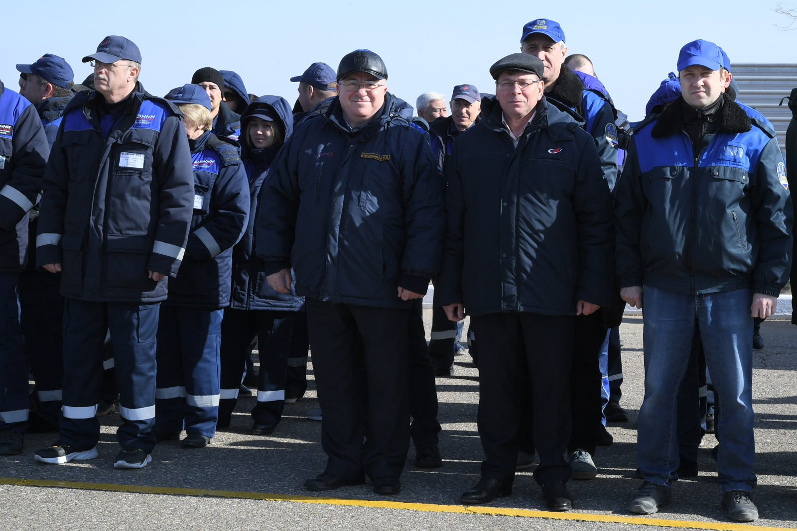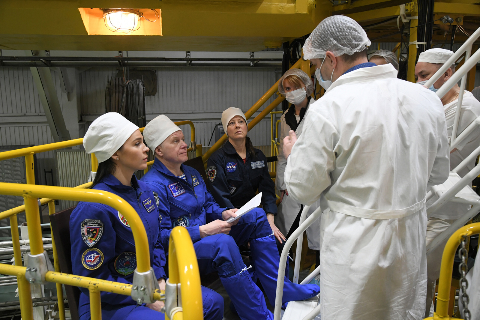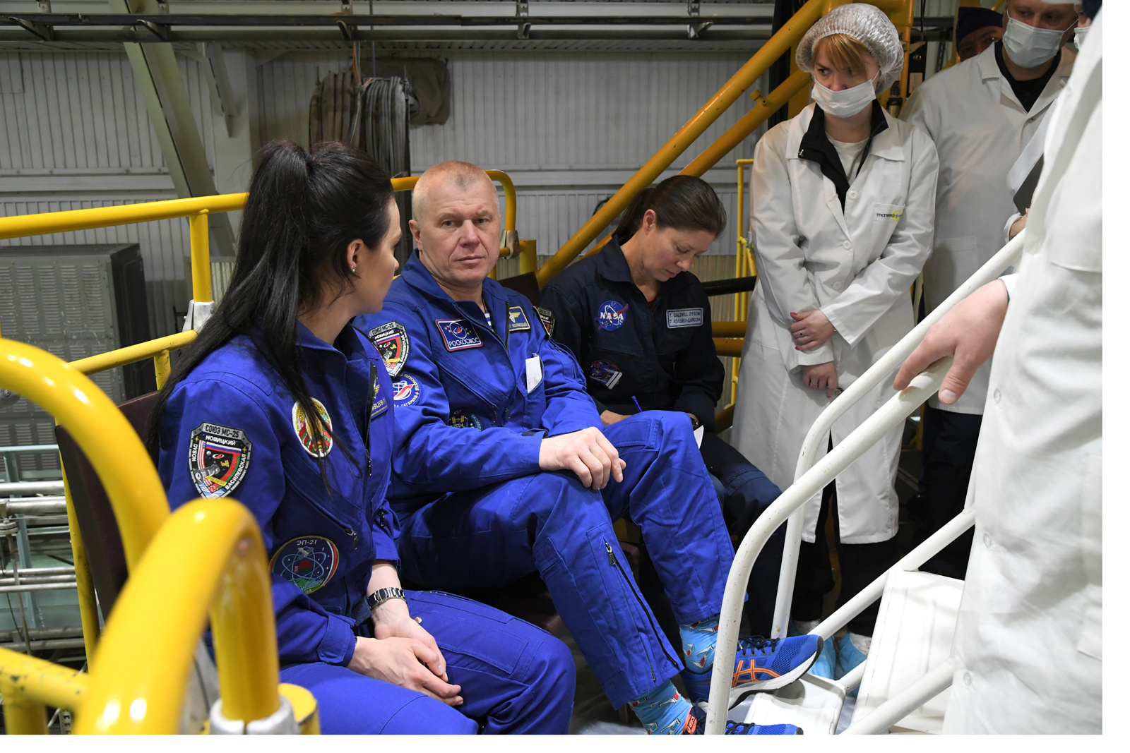 По завершении вводного инструктажа экипажи поочередно заняли свои места в корабле, проверили размещаемое снаряжение и доставляемые грузы в спускаемом аппарате и бытовом отсеке, в тестовом режиме убедились в работоспособности бортовых систем.