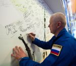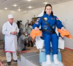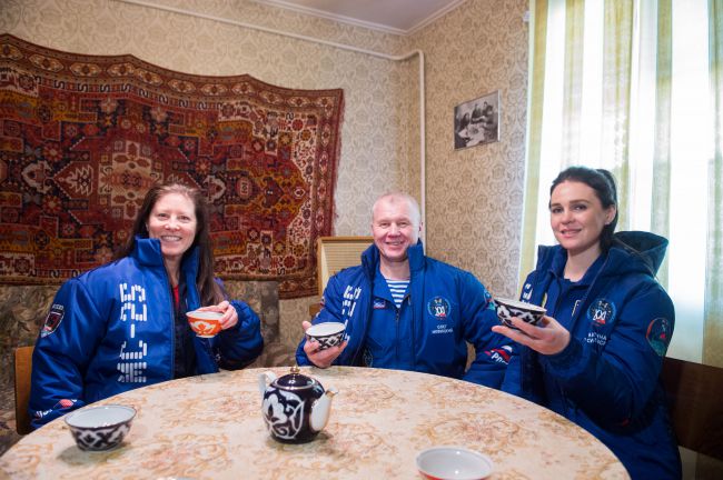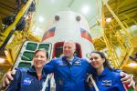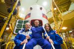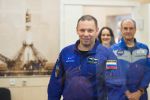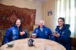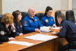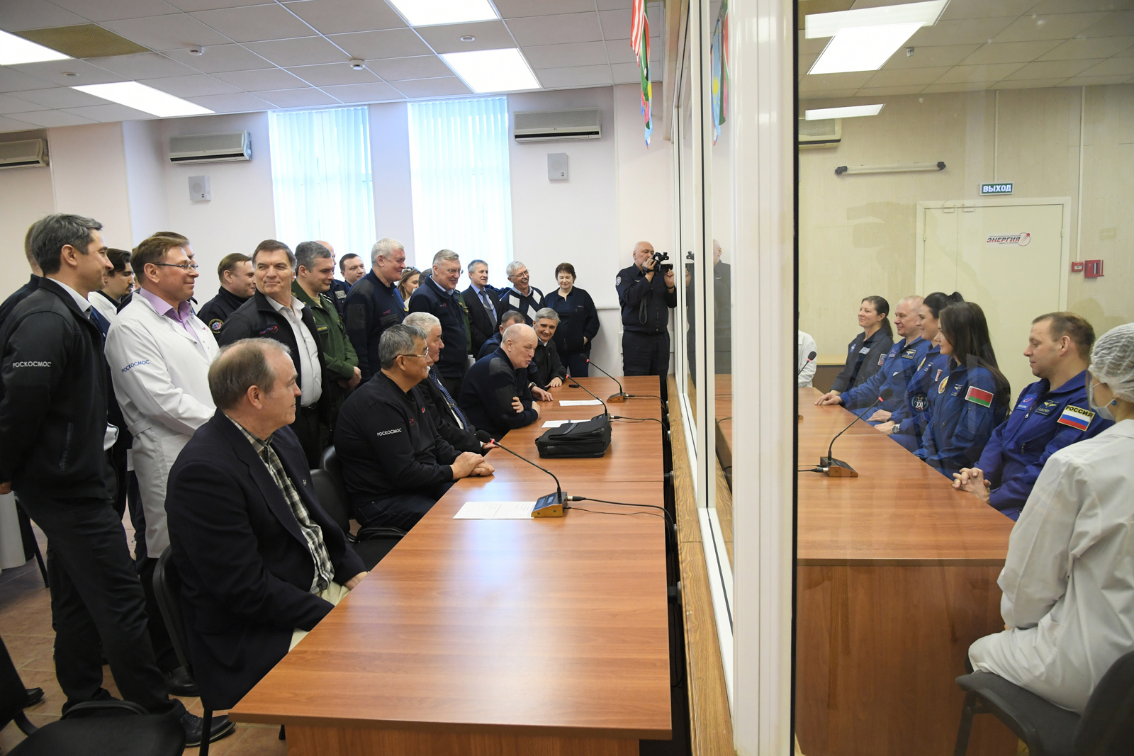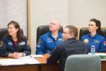 После заключительной «примерки» космического аппарата, который доставит экипаж на станцию, космонавты, участники космического полета и астронавты передали свои личные вещи для укладки на пилотируемый корабль.