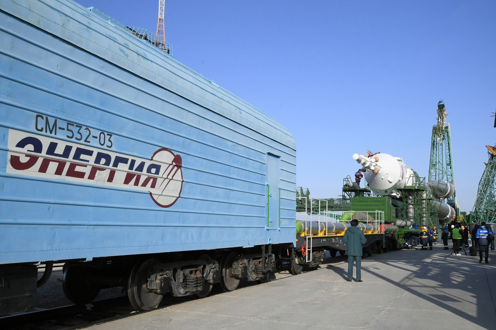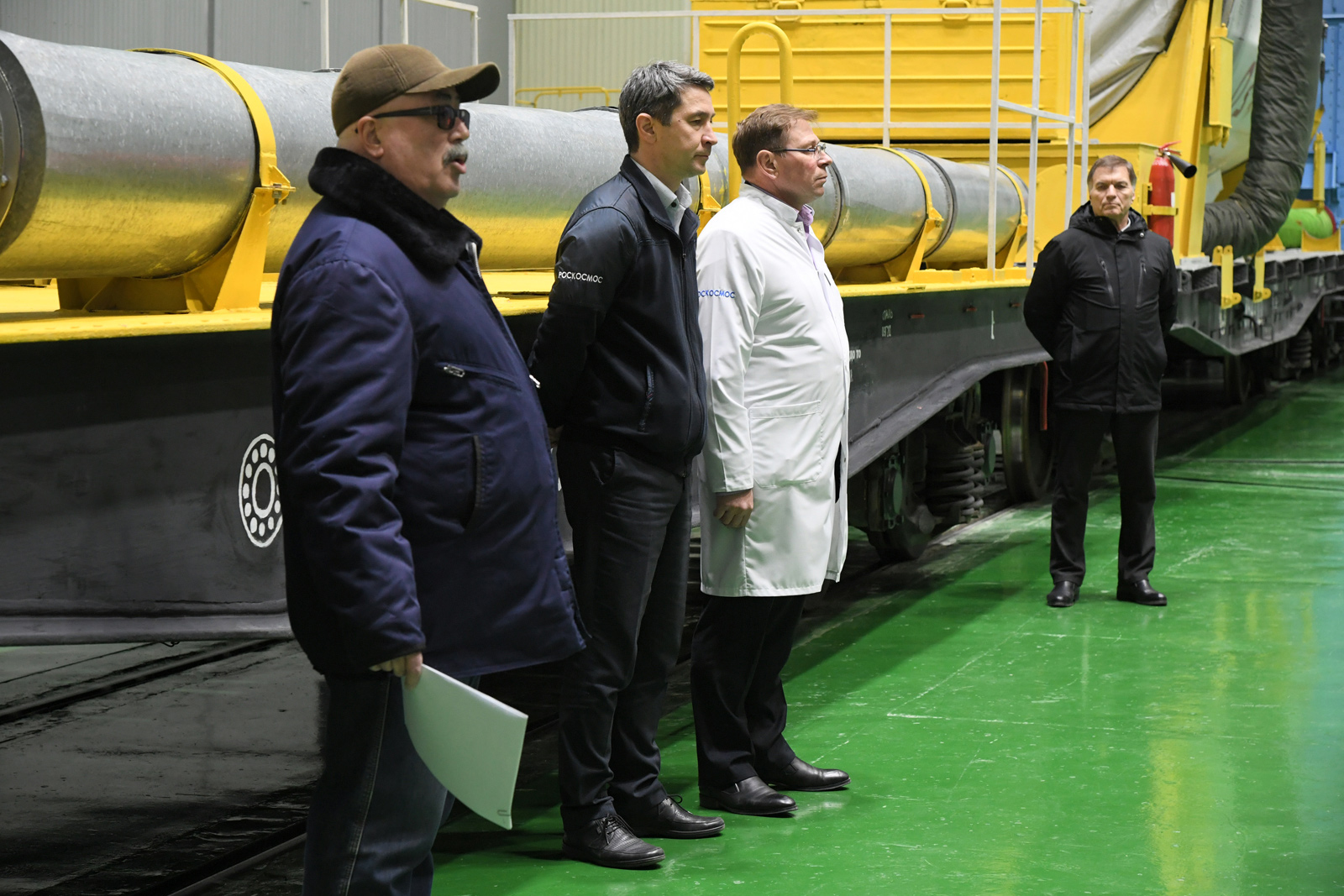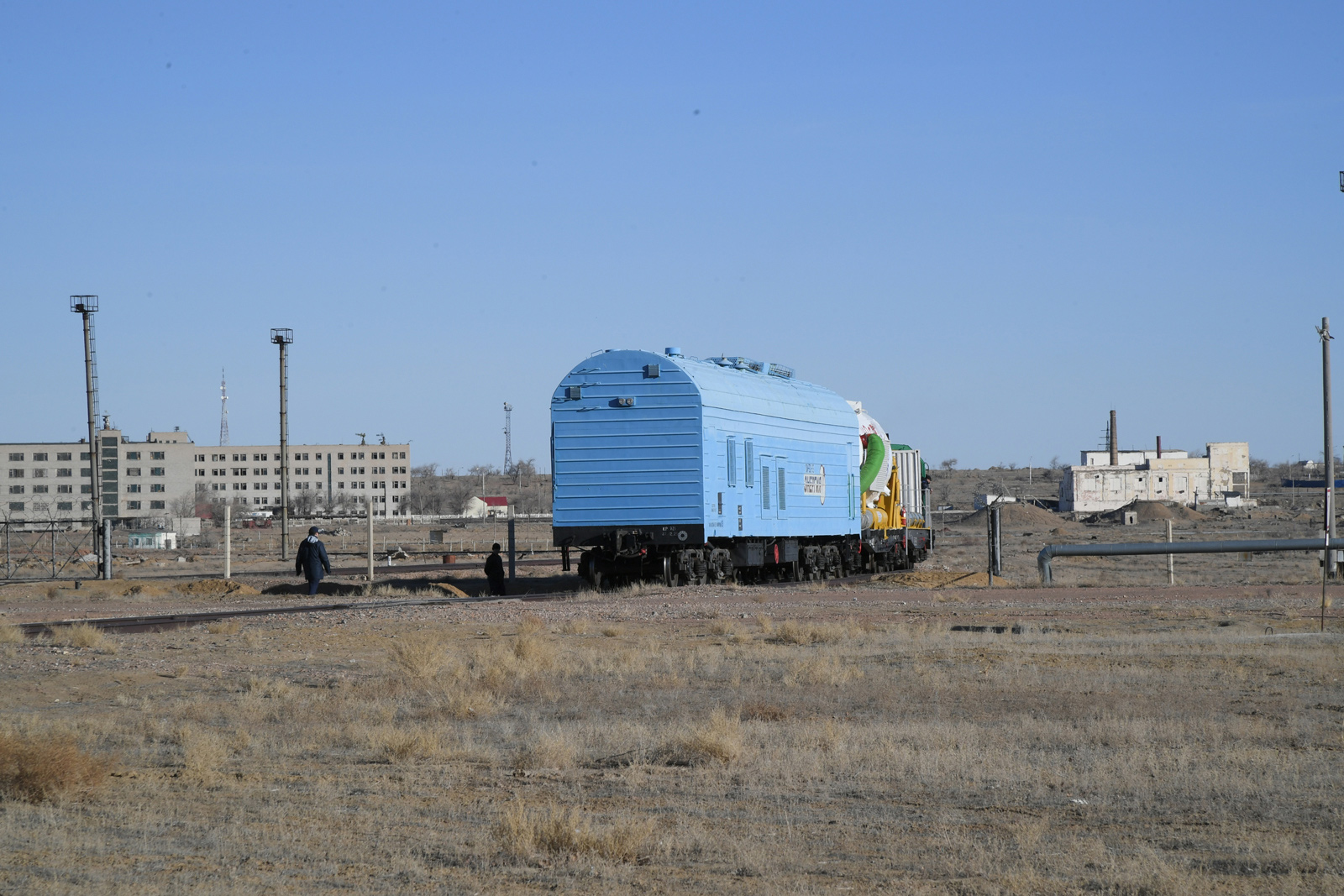 Сегодня специалисты РКК «Энергия» им. С.П. Королева и профильных предприятий Роскосмоса выполнили комплекс технологических операций по погрузке и отправке корабля железнодорожным транспортом в монтажно-испытательный корпус ракеты-носителя площадки 31, где провели подготовку головного блока к сборке ракеты космического назначения «Союз-2.1а».