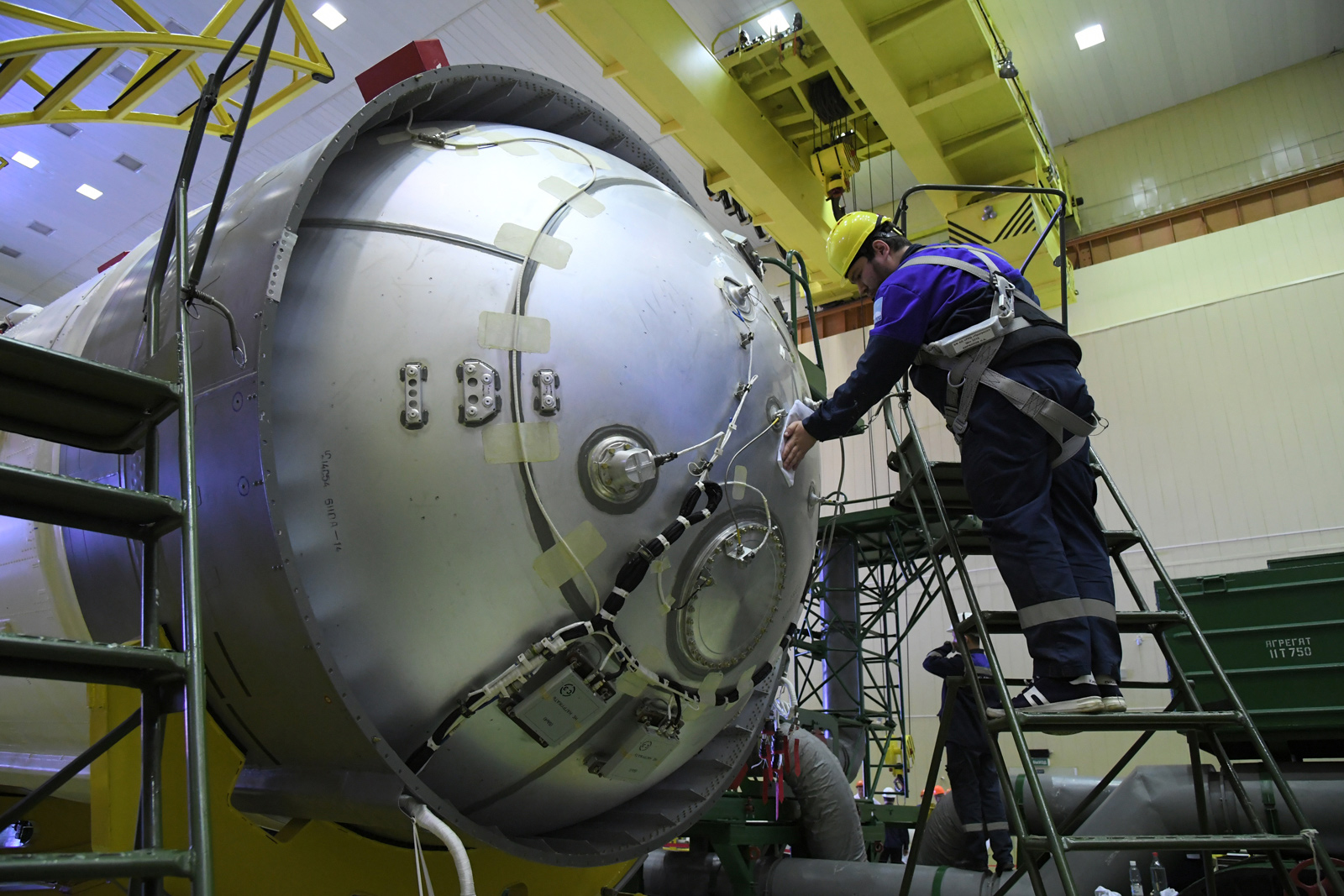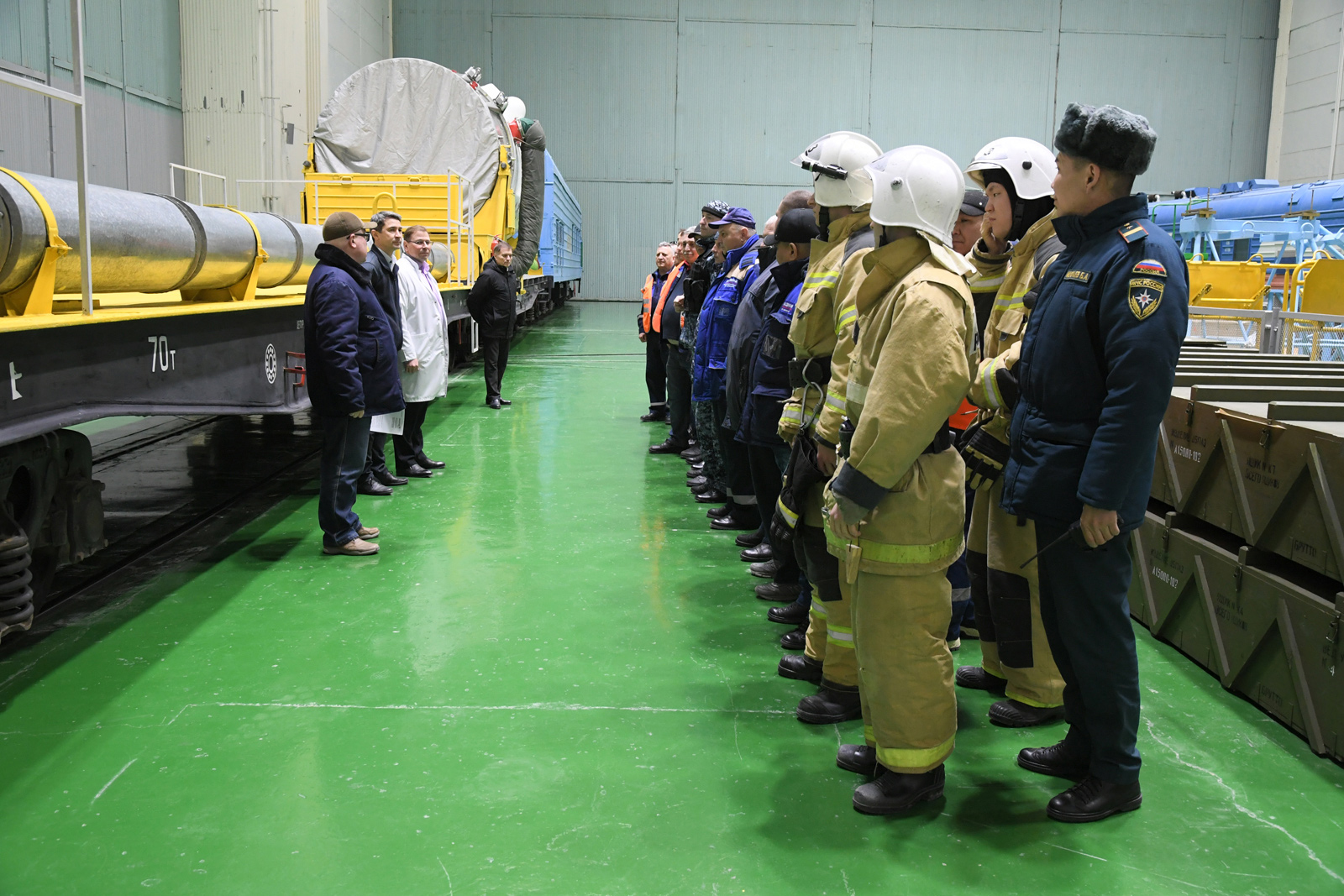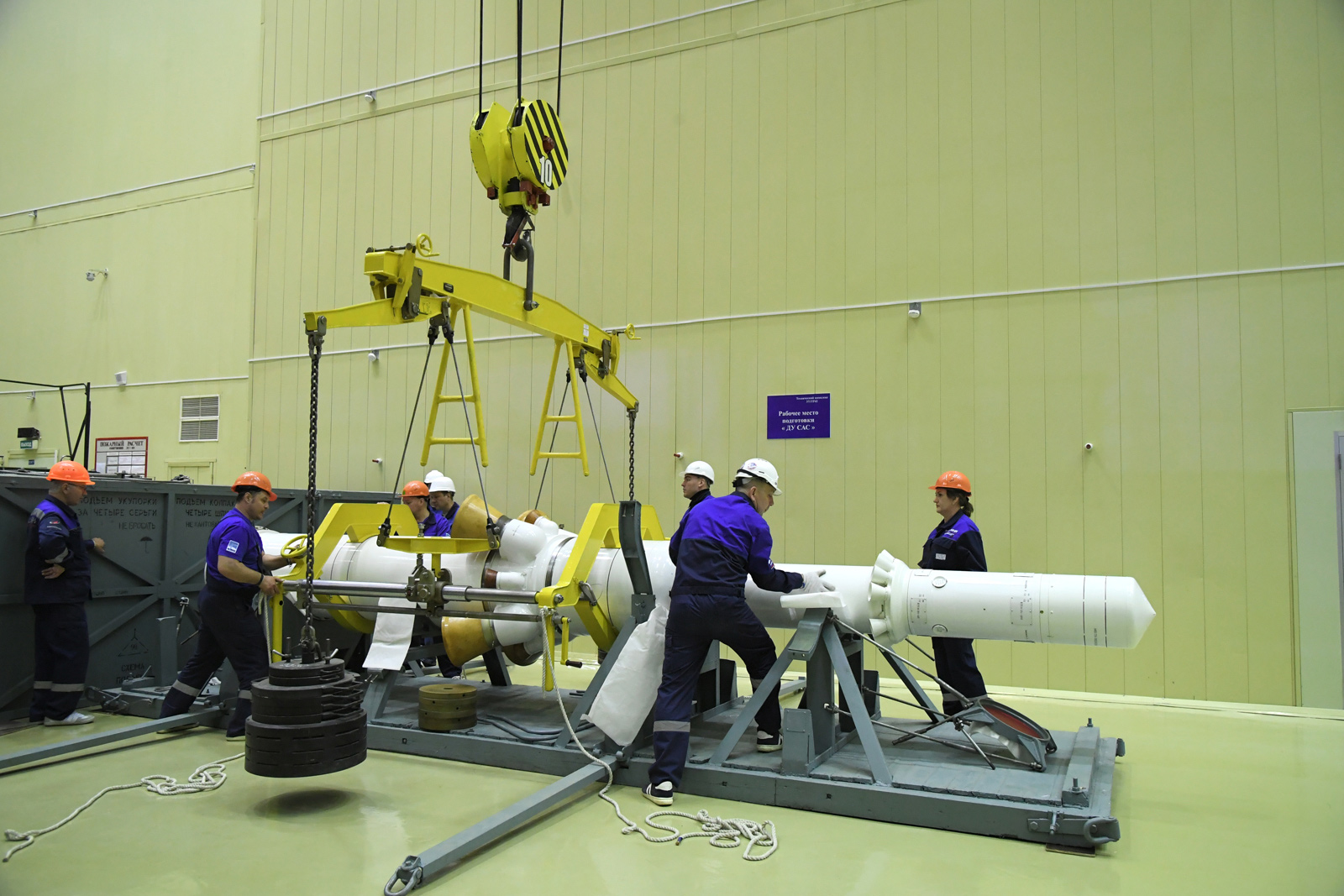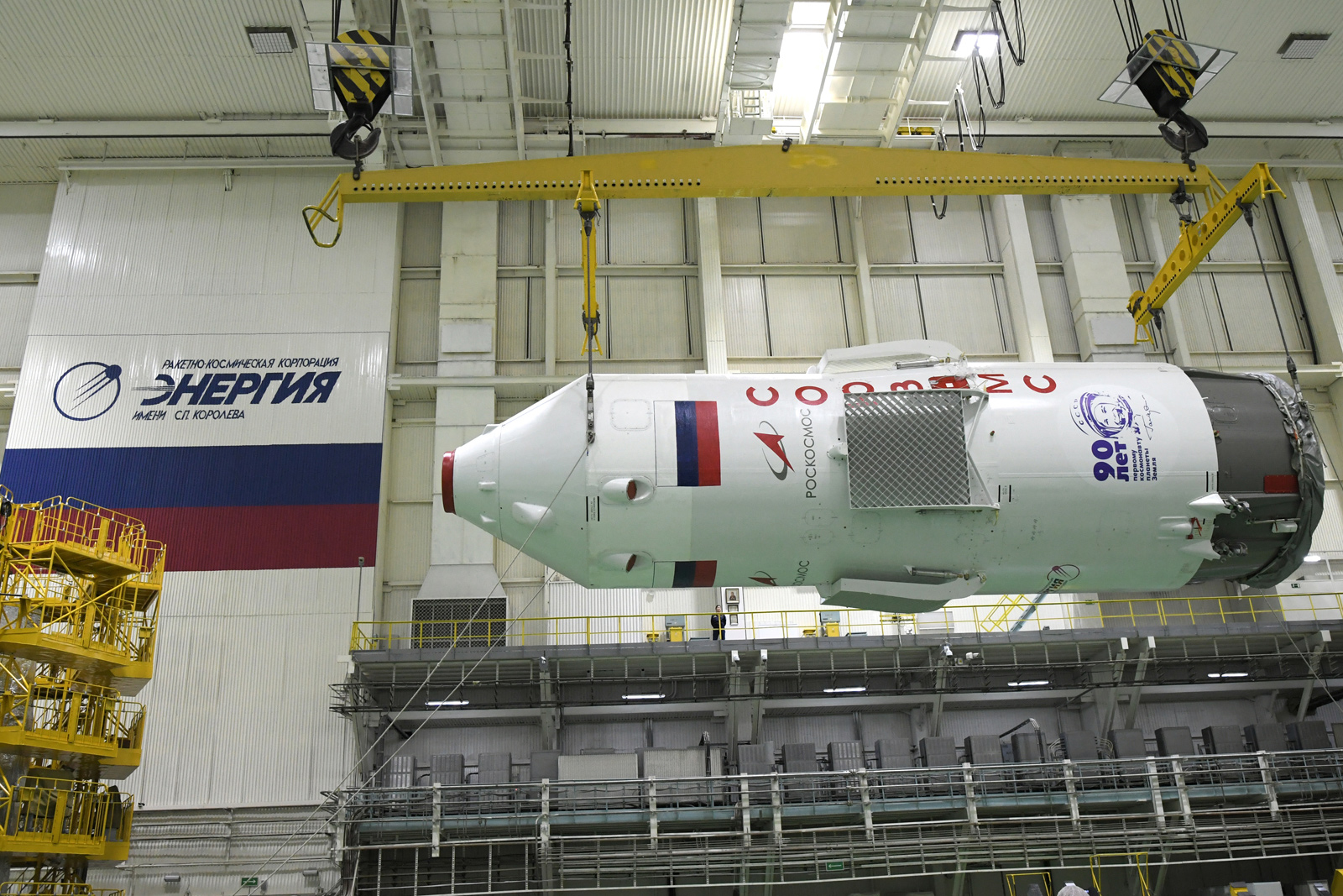 Сегодня специалисты РКК «Энергия» им. С.П. Королева и профильных предприятий Роскосмоса выполнили комплекс технологических операций по погрузке и отправке корабля железнодорожным транспортом в монтажно-испытательный корпус ракеты-носителя площадки 31, где провели подготовку головного блока к сборке ракеты космического назначения «Союз-2.1а».