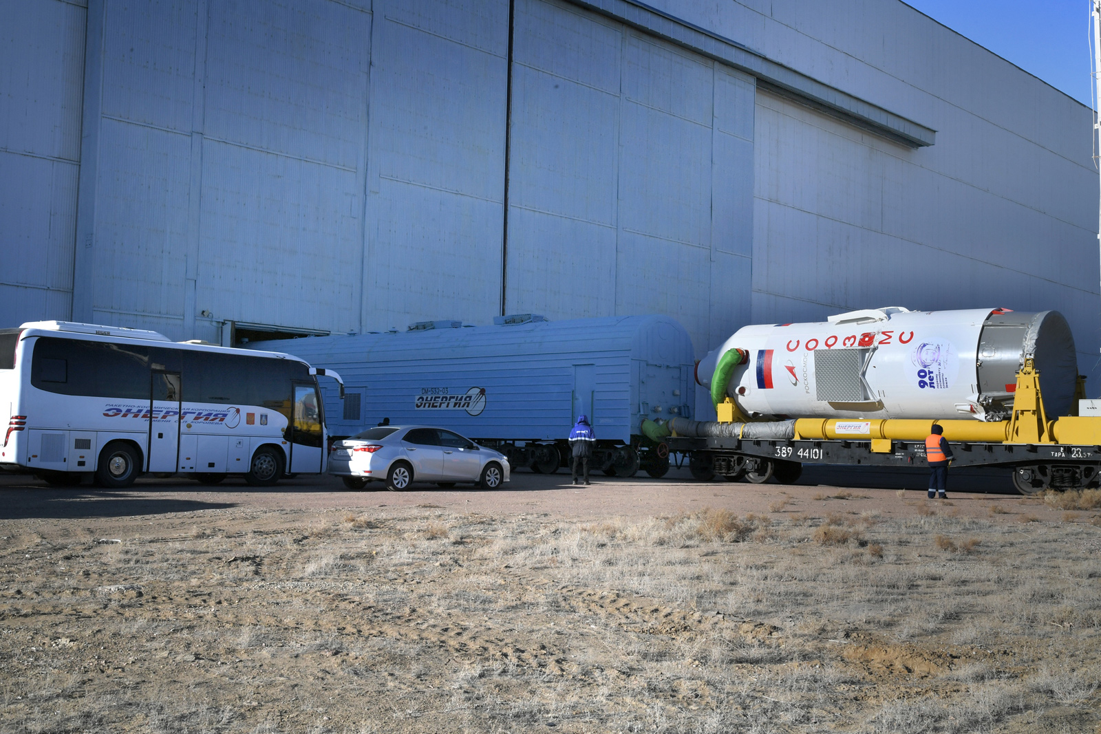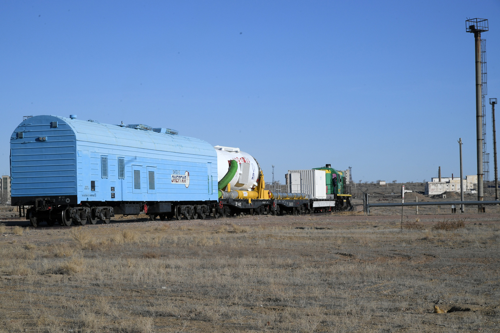 На космодроме Байконур состоялась транспортировка космической головной части с транспортным пилотируемым кораблем (ТПК) «Союз МС-25» на общую сборку ракеты космического назначения.