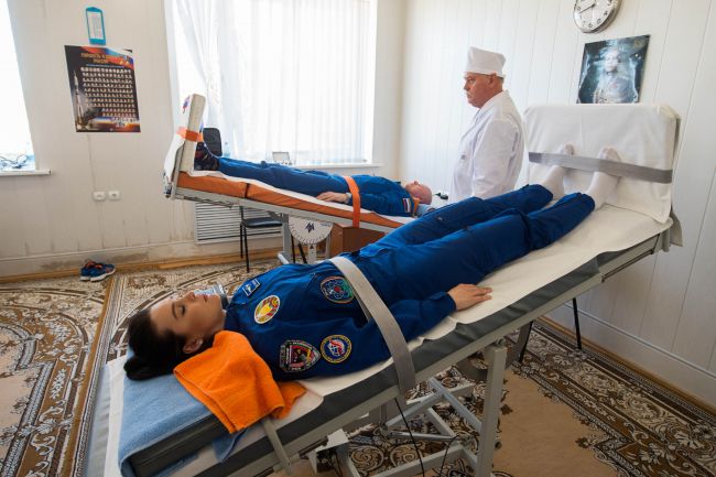 Журналисты наблюдали за подготовкой основного и дублирующего экипажа на занятиях по ручным режимам управления пилотируемым кораблем и по бортовой документации. Также они смогли запечатлеть вестибулярные тренировки и занятия общей физической подготовкой.