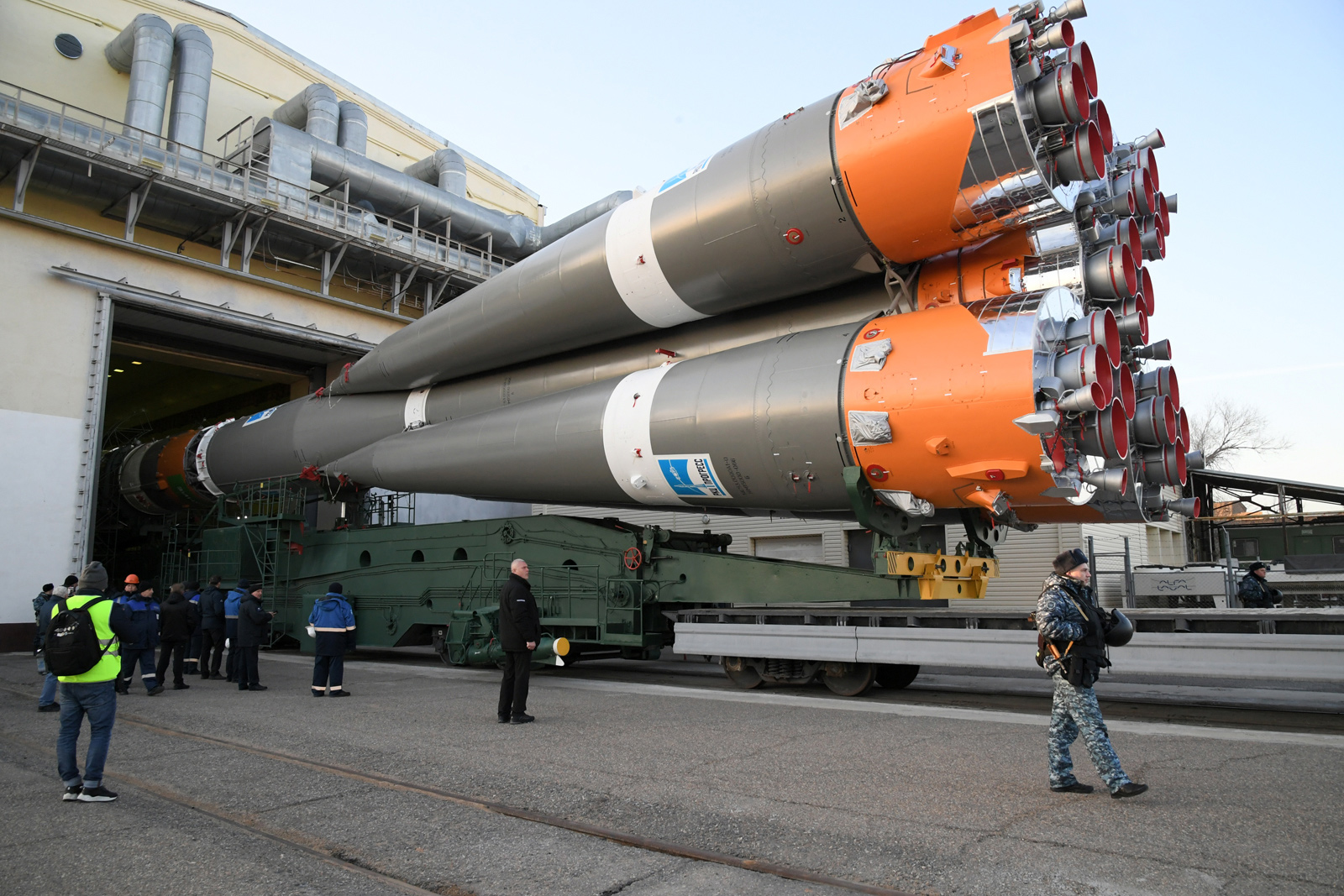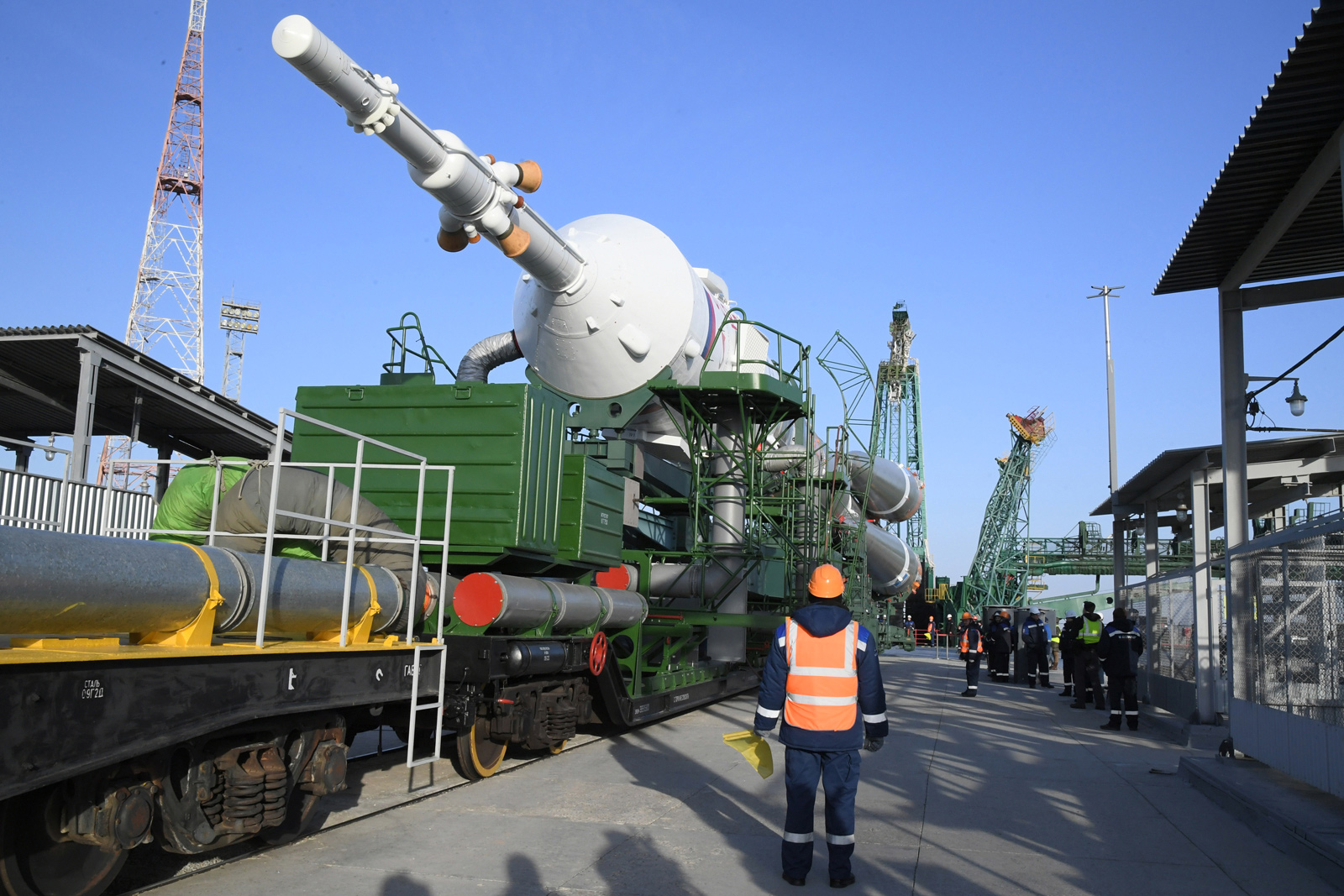На космодроме Байконур состоялся вывоз ракеты-носителя с ТПК «Союз МС-25» на стартовый комплекс