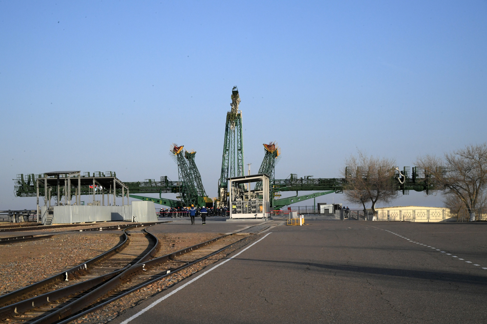 Ракета-носитель с пилотируемым кораблем «Союз МС-25» установлена на стартеРакета-носитель с пилотируемым кораблем «Союз МС-25» установлена на стартеРакета-носитель с пилотируемым кораблем «Союз МС-25» установлена на стартеРакета-носитель с пилотируемым кораблем «Союз МС-25» установлена на старте