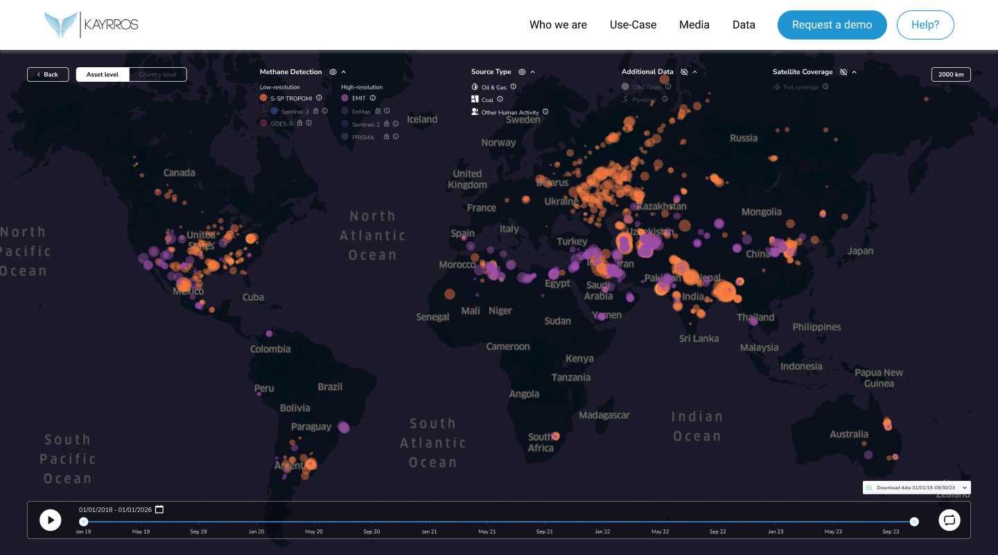 ТАМПА, Флорида – Французский поставщик инструментов для анализа спутниковых изображений, компания Kayrros, 29 ноября запустила бесплатную версию своей глобальной карты отслеживания выбросов метана, чтобы помочь правительствам и предприятиям отчитываться за свои выбросы.