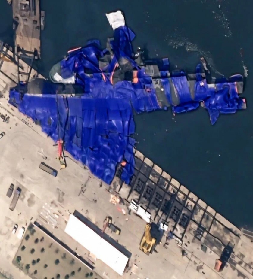 Скорее всего, это прикрыто тряпками. Или даже спускали на воду в таком камуфляже.