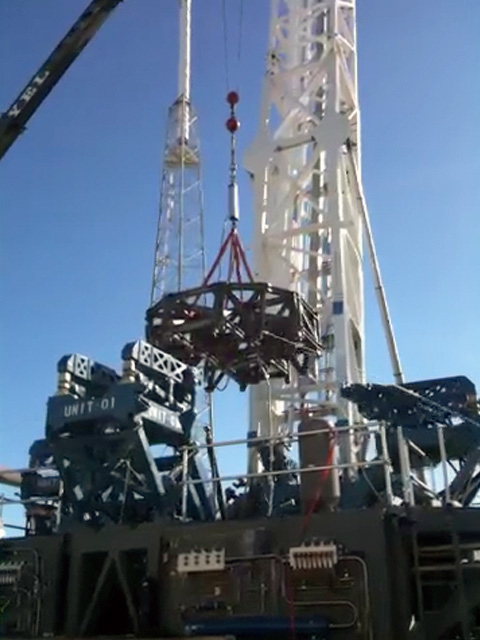 Flotation testing of a portion of the recovery raft that will aid in returning the Falcon 9 first stage to land after flight.