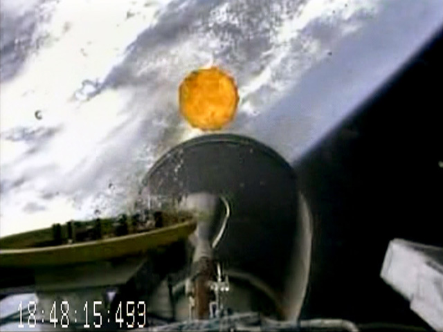 Почему 1-я ступень сверху оранжевая? Парашют горит?
