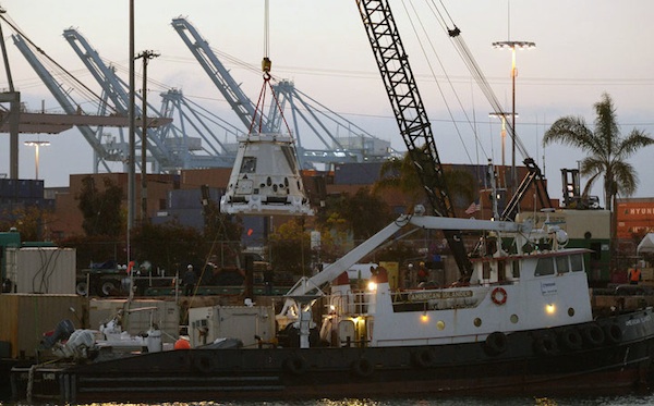 Да, этот ржавый буксир толкал 60метровую баржу с краном American Islander.