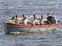 Ого! Шлюпка-то принадлежтит СПбГМТУ (бывшее ЛКИ) - моя альма-матер!  :wink:  Бывало, и я на банке загребным на весло налегал! Давно это было!  :)