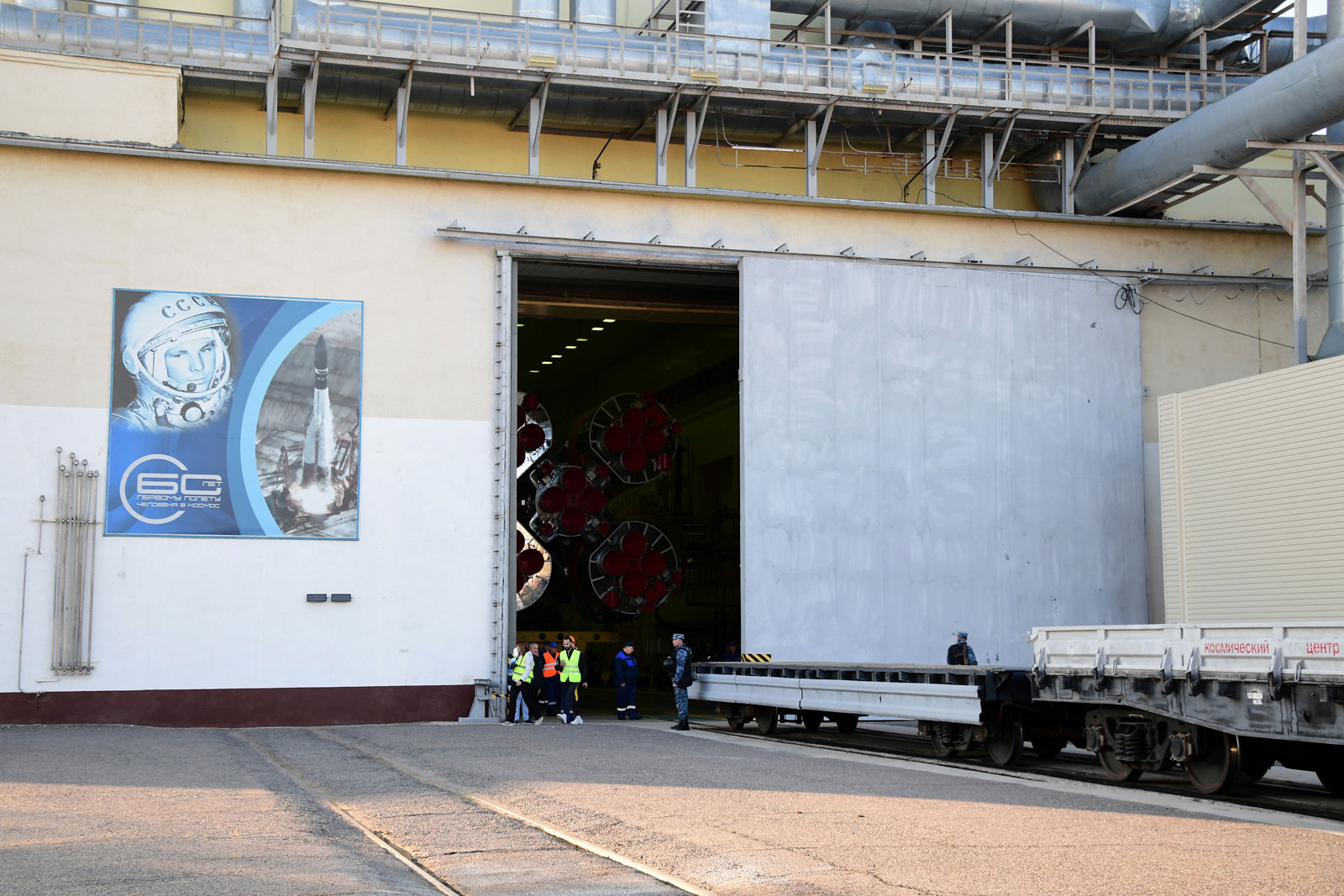 Сегодня утром ракета космического назначения (РКН) «Союз-2.1а» с транспортным пилотируемым кораблем (ТПК) «Союз МС-24» вывезена из монтажно-испытательного корпуса ракеты-носителя и установлена в стартовом сооружении на площадке 31 космодрома Байконур.