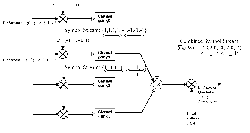 При такой скорости изменения информации он не может прередавать сигнал с полосой частот меньше, чем требуется по теореме Котельникова. Вот и получается расширение полосы звука до полосы передатчика в 1 МГЦ или больше. Описан множественный доступ с кодовым разделением каналов.